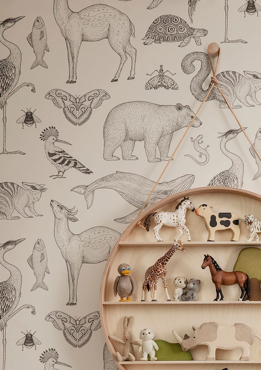 Tiere aus aller Welt gibt es auf dieser liebevoll gestalteten Vliestapete aus dem Hause Ferm Living zu bewundern. Vom Wiedehopf bis zum Wal, Schildkröten ebenso wie Bären, Antilopen und Schmetterlinge – alle sind detailgetreu und realitätsnah gezeichnet. So bleiben im Kinderzimmer die Erinnerungen an den letzten Zoobesuch lebendig und regen dazu an, sich mit den verschiedenen Tierarten spielerisch zu beschäftigen.