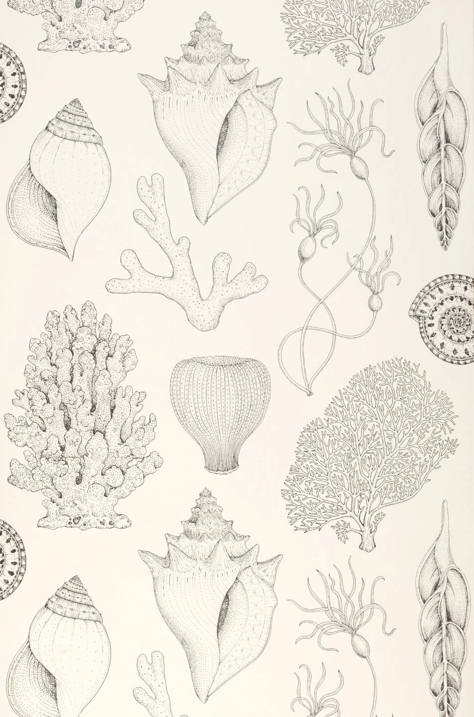 Einen fast wissenschaftlich genauen Blick auf die unerschöpflichen Formen der Natur bietet Vliestapete Shells von der dänischen Firma Ferm Living. Sie beschränkt sich auf anthrazitfarbene Umrisse und Schraffuren auf dem cremeweißen Grund. So lenkt das Design die Aufmerksamkeit ganz auf die wundersamen Formen der abgebildeten Muschelschalen, Schneckenhäuser und Korallen und strukturiert Ihre Wand fast unmerklich und vielseitig kombinierbar.