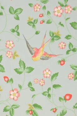 Eine Schwalbe macht noch keinen Sommer – aber wenn zu den farbenfroh dargestellten Schwalben noch reife Erdbeeren mit ihren kräftig grünen Blättern und wunderschöne Blüten in Weiß und Rosé dazukommen, dann kann der Sommer nicht weit sein! Mit ihrem leichtfüßigen, beschwingten Design auf dem mintgrauen Grund lädt Vliestapete Annabell die warme Jahreszeit zu Ihnen nach Hause ein und sorgt für eine unbeschwerte Stimmung.
