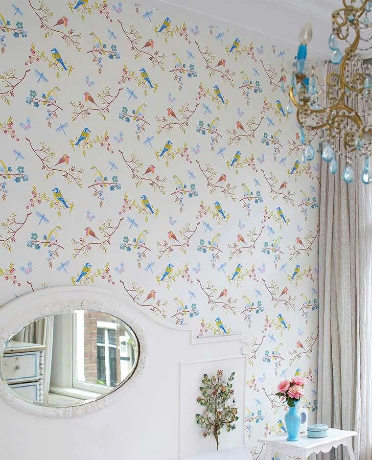 Der Frühling ist da – in Cremeweiss! In Ihrem Zuhause wird er mit unserer Audrey nie enden. Zarte Blüten, Vögel, Libellen und Schmetterlinge geben einen Vorgeschmack auf die erwachende Natur.