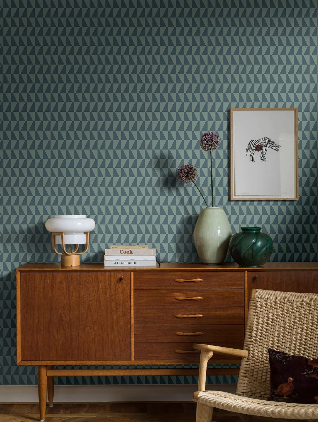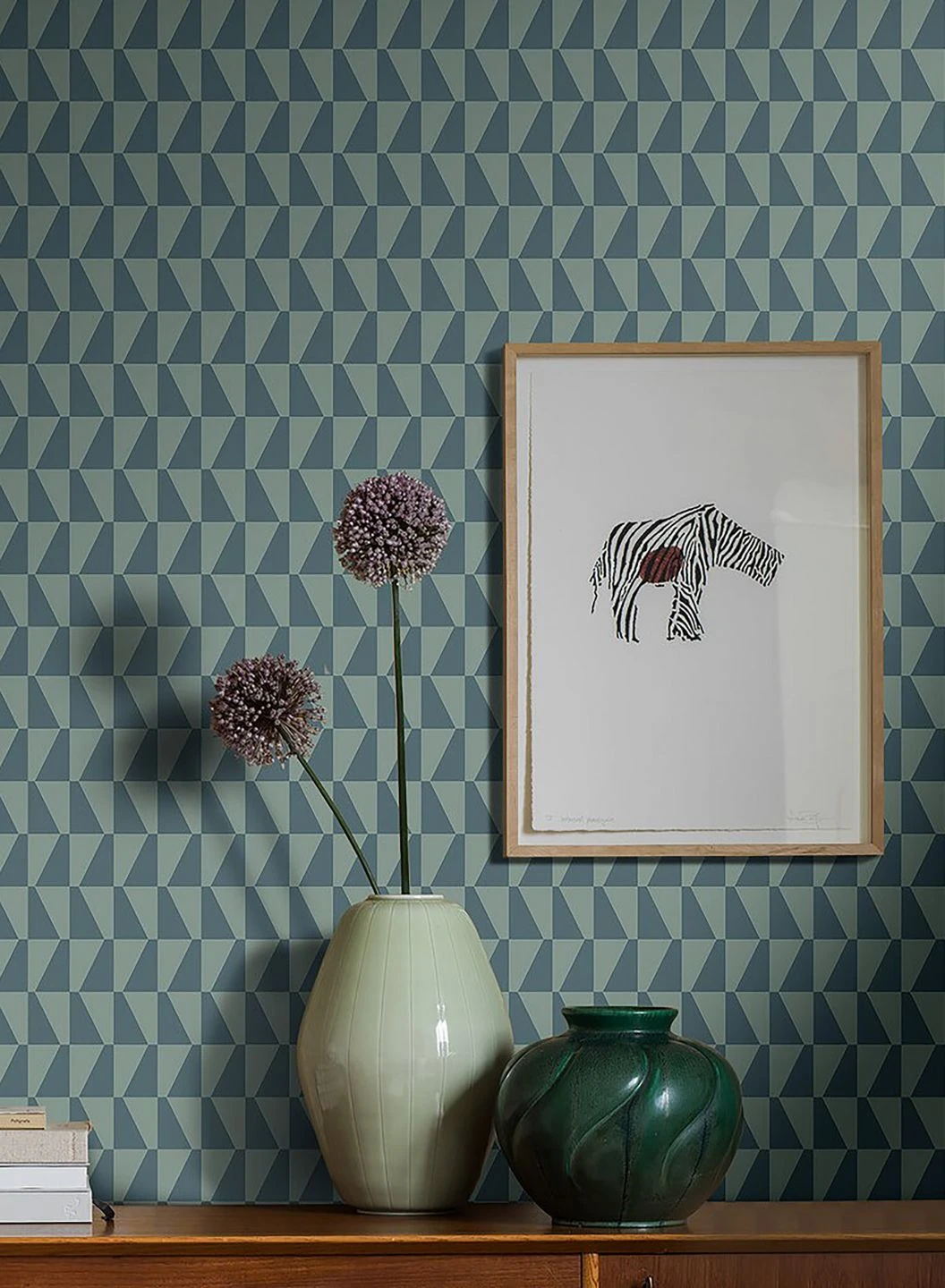 Schlichtes, klares Design trifft auf dieser geometrischen Vliestapete eine raffinierte Kombination aus graugrüner Grundfarbe und graublauen Trapezen, die durch ihre unterschiedliche Anordnung ein Gefühl der Bewegtheit erzeugen. Das geordnete grafische Muster in den kühlen, ruhigen Farbtönen passt ausgezeichnet zum geradlinigen skandinavischen Stil und bringt elegantes Understatement an Ihre Wände.