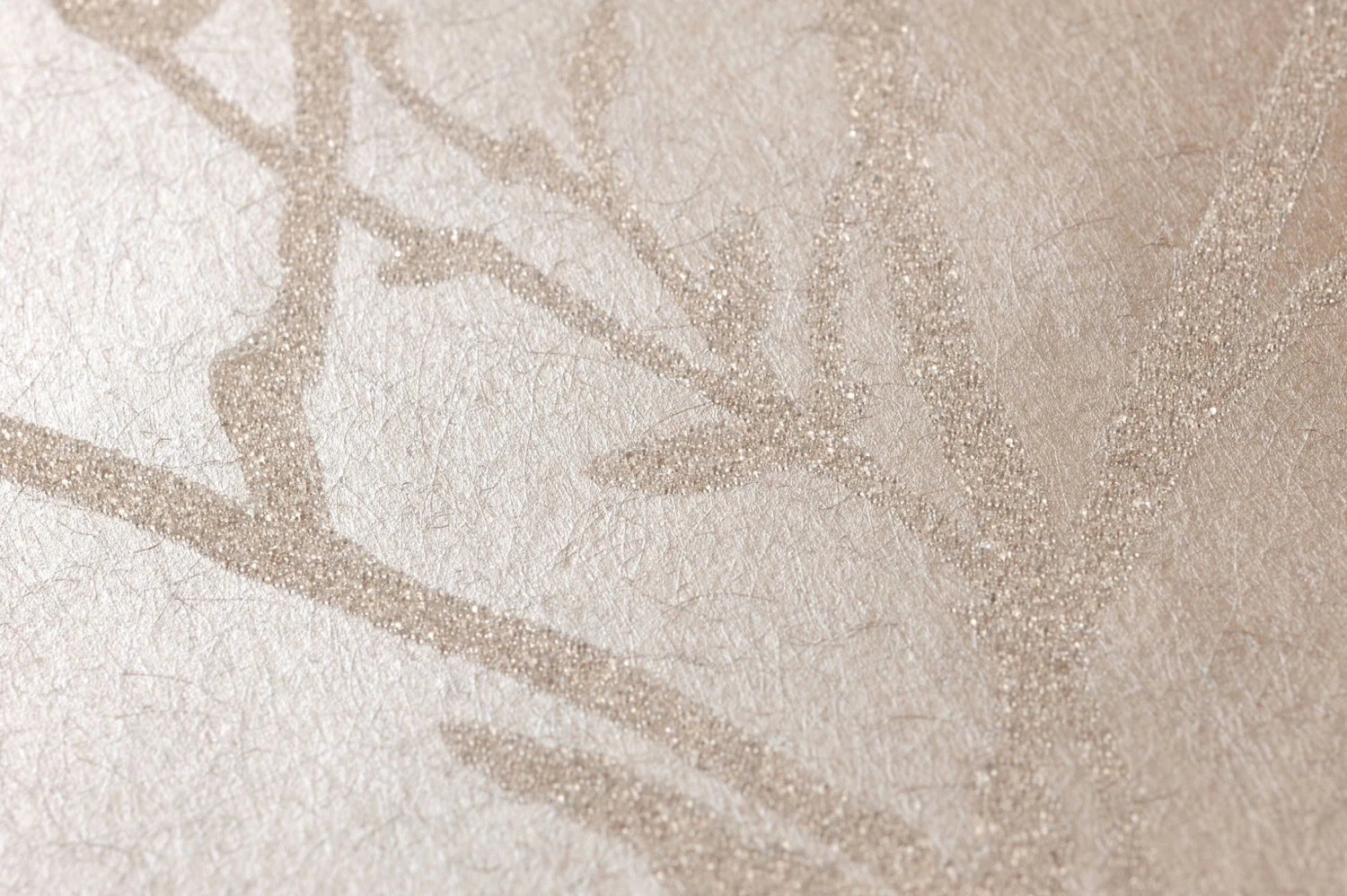 Nur zwei Nuancen von Cremefarben reichen aus, um mit Hilfe der fühlbaren Oberflächenstruktur schimmernde Zweige mit Knospen und zarten Blattansätzen an Ihre Wände zu zaubern. Funkelnde Highlights entstehen durch kleine gläserne Perlen, die das Licht reflektieren. Romantisch oder im asiatischen Stil – die Vliestapete verleiht Ihrem Wohn- oder Schlafzimmer vornehme Eleganz und lässt sich wunderbar kombinieren.