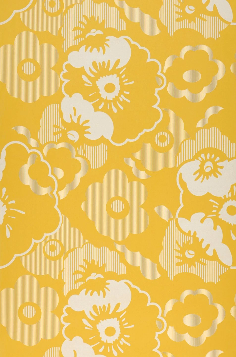 Die Siebziger Jahre lassen grüßen mit stilisierten Blüten und in anregendem Zitronengelb. Der immerwährende Sommer zieht in den Raum ein und mit ihm gleich die gute Laune. Vintage-Fans werden ebenso begeistert sein wie die Anhänger von leuchtenden Blumentapeten, die Wärme, Sonne, Offenheit und Optimismus versprühen.