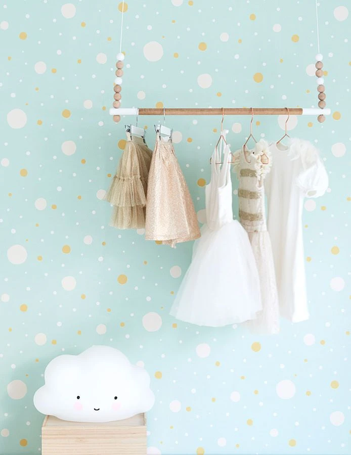 Auf dem hellgrünen Fond regnet es pastelliges Konfetti in Blassbeige, Cremeweiss, Ockergelb. Diese Farbvariante der Designer Tapete aus dem Hause Majvillan lässt Kreativität, Tatendrang und Freude sprudeln und bleibt dennoch auf ihre Art romantisch verträumt.