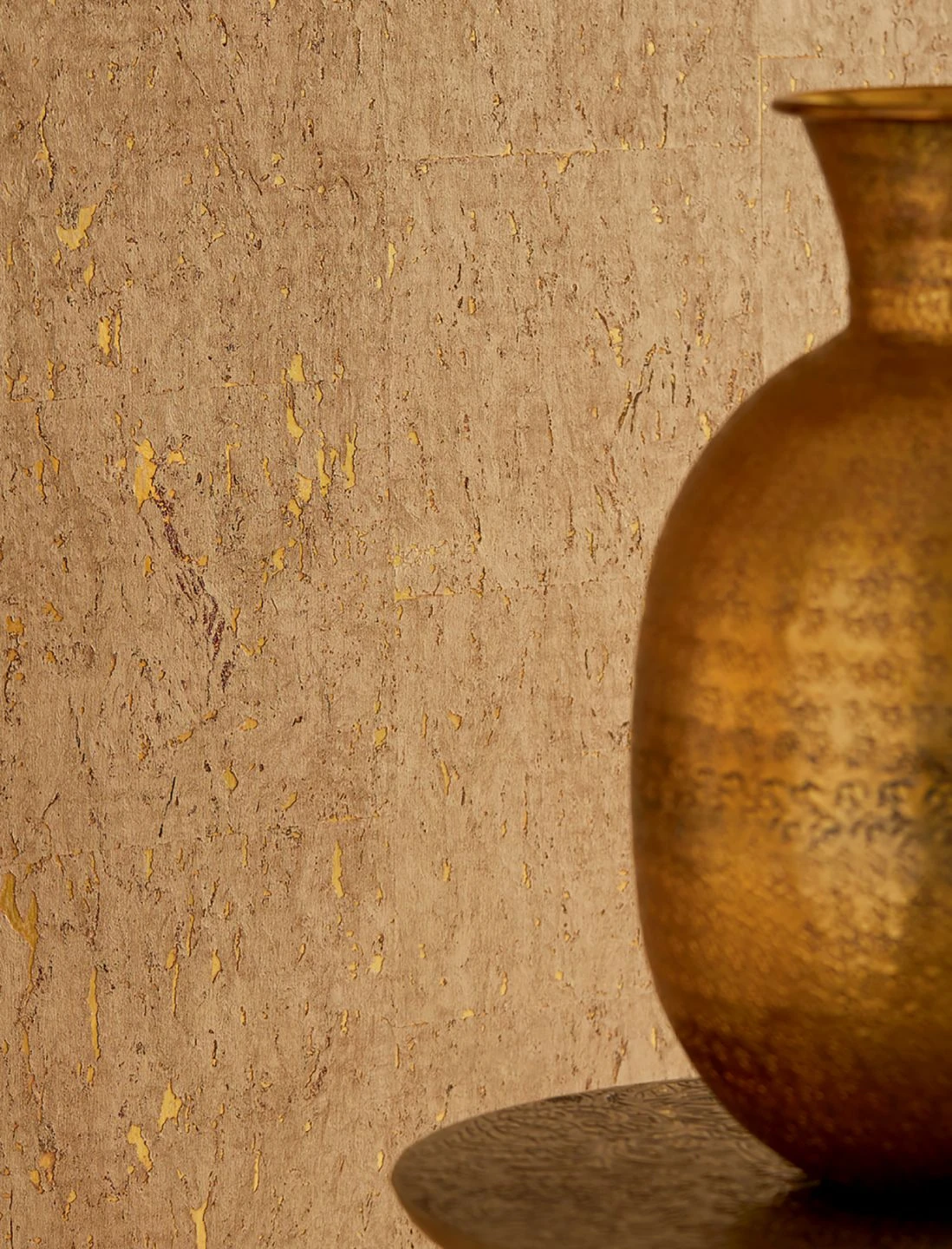 Die ägyptischen Götter hätten ihre wahre Freude an dieser Naturtapete, deren Oberfläche aus natürlicher Korkeiche besteht. Sie erinnert an die Wandgestaltung der Pharaonen und bringt durch Mattgold und Gold Metallic die prächtige Komponente ins Spiel. Ein magisches Lichtbild, wie von der warmen Sonne geküsst, entfaltet sich im Raum.