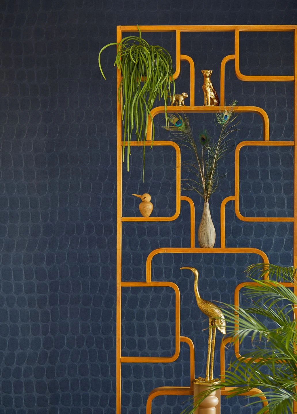 Ein nicht alltäglicher Wandschmuck ist diese Vliestapete, deren Muster die Struktur von Krokodilleder nachempfindet. Eine fühlbare Reliefstruktur entsteht durch den auf der Oberfläche aufgebrachten Flock. Die ungewöhnliche Tapete verträgt Möbel und Deko-Elemente in kräftigen Farben, die sich interessant von ihrer angenehm dunklen, stahlblau schimmernden Färbung abheben und ihren eigenen Charakter mitbringen.