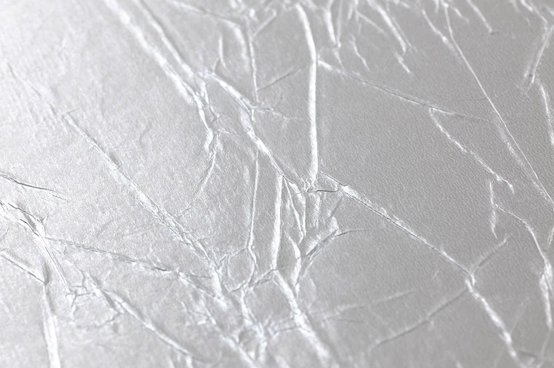 Space Age Fans dürfen sich auf diese extravagante Crush Tapete mit einer Fülle an kunstvollen Knitterfalten freuen. Die silbergraue Erscheinung mit schimmernder Optik erhält durch direkten Lichteinfall noch mehr Intensität. Das willkürlich freie Faltenmuster bringt spannende Bewegung ins Spiel und hebt sich als fühlbares Relief ab.