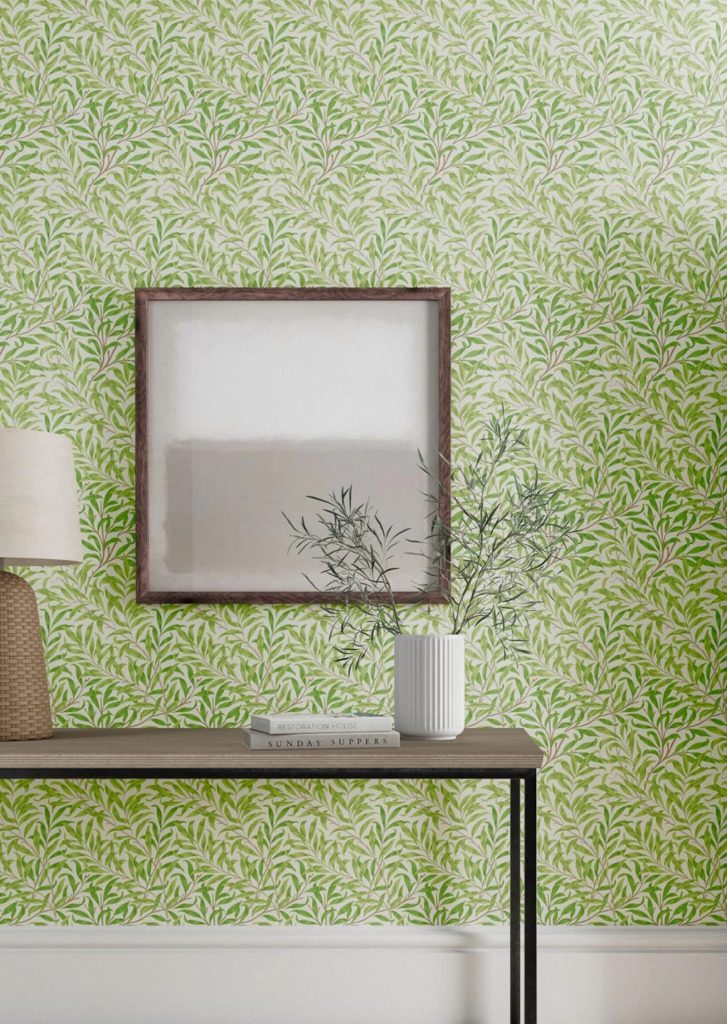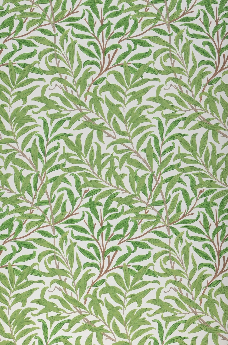 Schmale Weidenblätter an schlanken, biegsamen Zweigen feiern den Frühling mit ihrem leuchtenden Maigrün – so wie die Weide in jedem Jahr einer der ersten Bäume ist, an deren Zweigen sich mit gelblichem Schimmer die jungen Blätter ankündigen. Die leimgedruckte Papiertapete strahlt dazu noch einen kostbaren Retro-Schick aus und verleiht antiken Möbeln oder auch dem Landhaus-Stil frühlingshafte Lebensfreude.