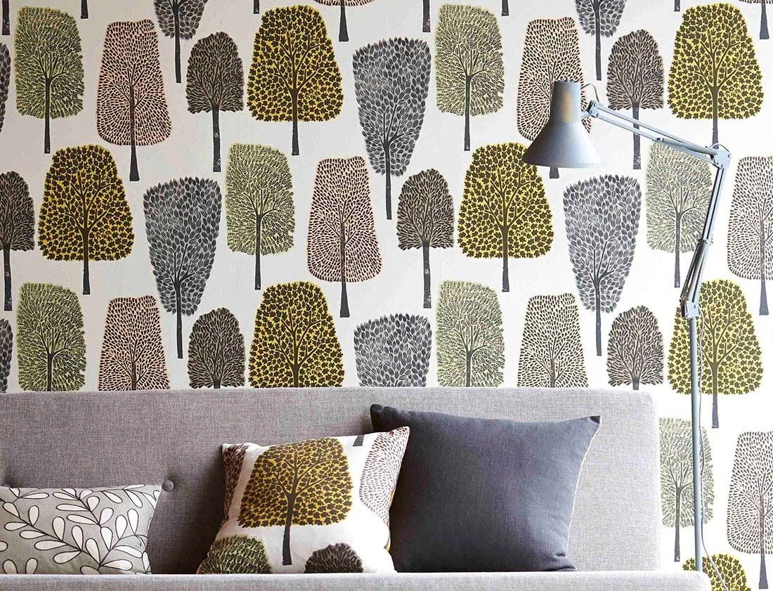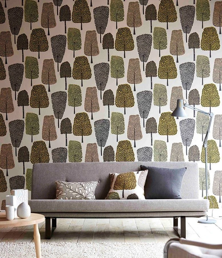 Ein Laubwald belebt Ihre Wände mit seiner Formenvielfalt. Die stilisierten Bäume mit ihren unterschiedlichen Blattformen, die wie mit Stempeln auf die Tapete aufgebracht scheinen, zeigen mit ihren beigeroten, gelben, schilfgrünen und graubeigen Farbtönen den Übergang vom Spätsommer in den Herbst. Die Vliestapete passt gut zu Möbeln in Grau oder Holztönen und setzt schwungvoll geformten Retro-Möbeln ihre Ausdrucksstärke entgegen.
