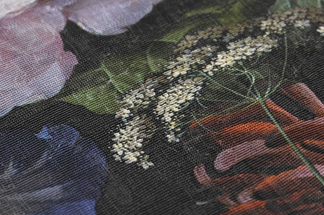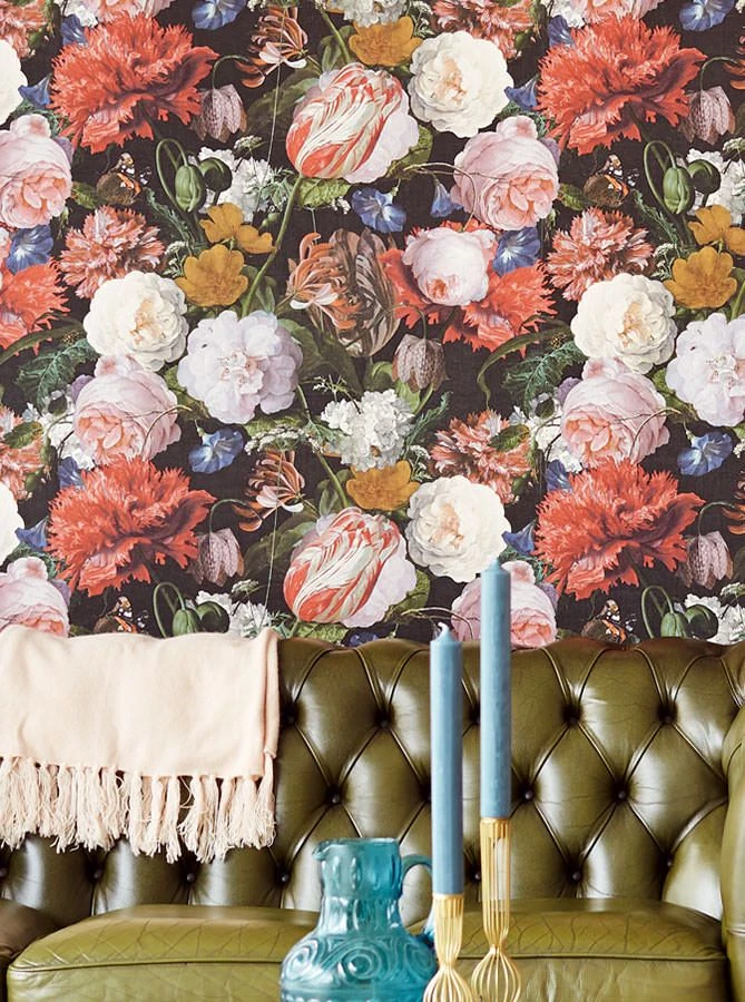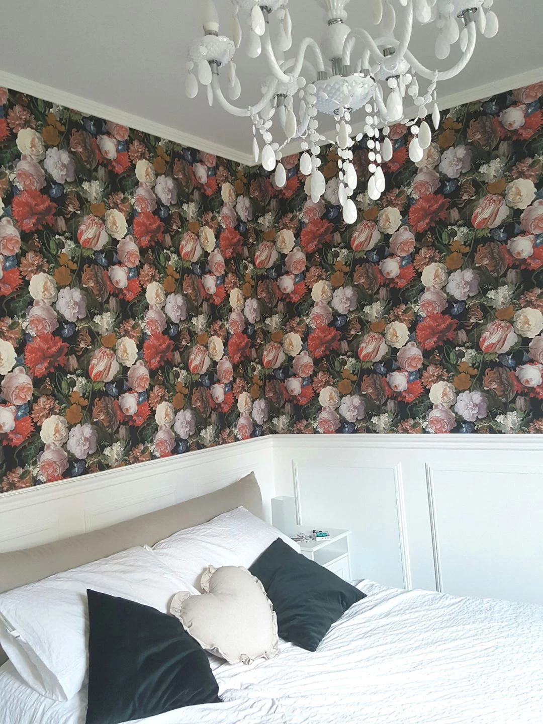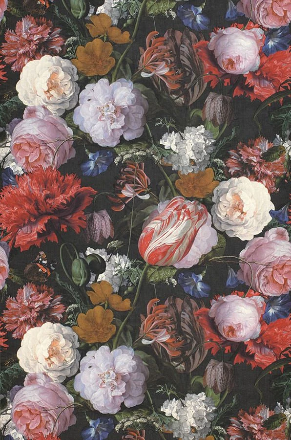 Wie das Stillleben eines alten Meisters aus der Epoche des niederländischen Barocks mutet diese außergewöhnliche Tapete an. Üppige Blumen sind so realitätsgetreu und plastisch dargestellt, dass sie aus der Wand herauszuragen scheinen. Dicht an dicht bedecken sie den dunkel schwarzgrauen Grund, der gegenüber ihrer Farbenpracht zurücktritt. Die Oberfläche aus Vinyl mit ihrer textilähnlichen Struktur ist hoch waschbeständig und damit auch für Ihr Bad ideal geeignet.
