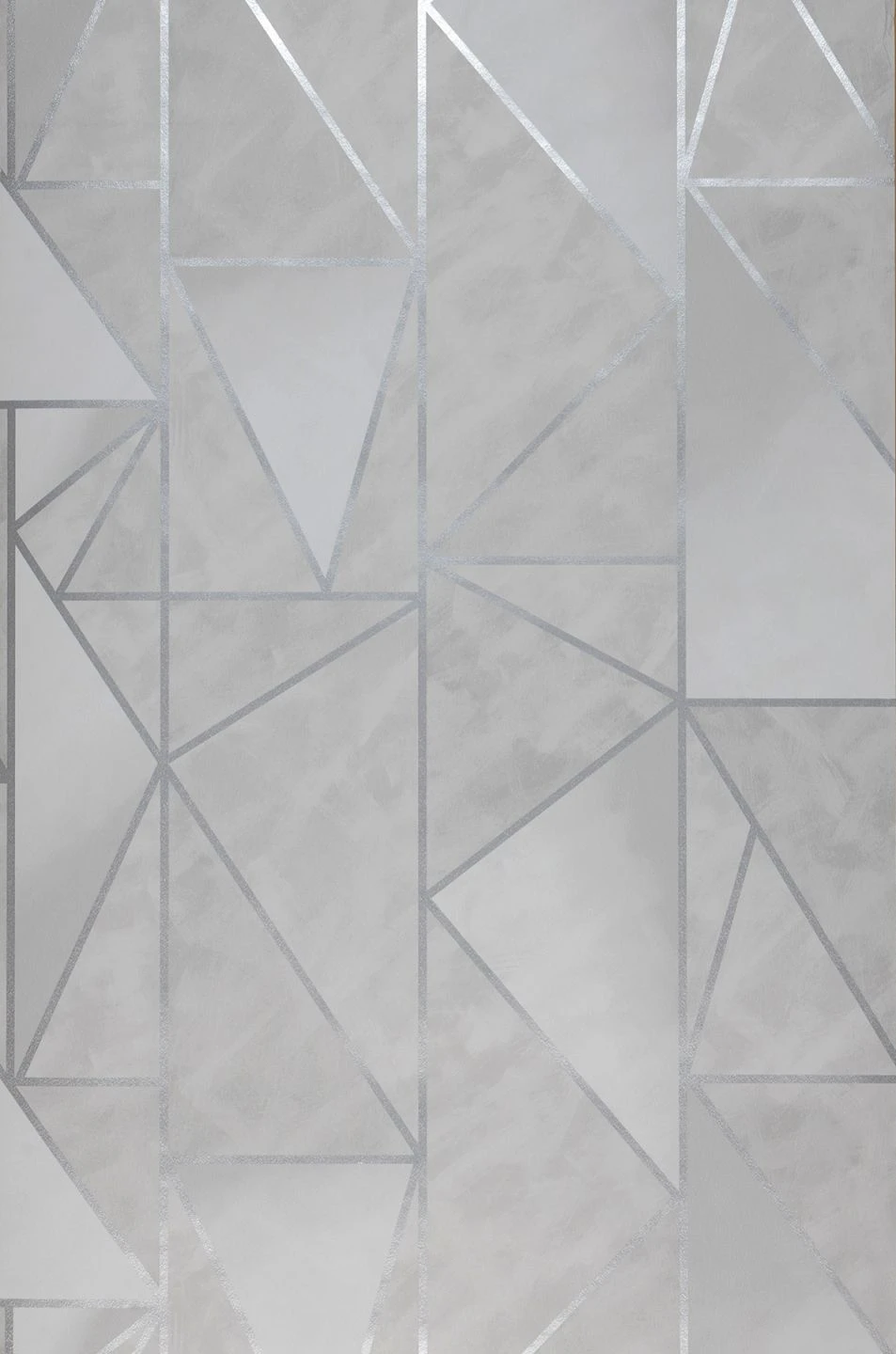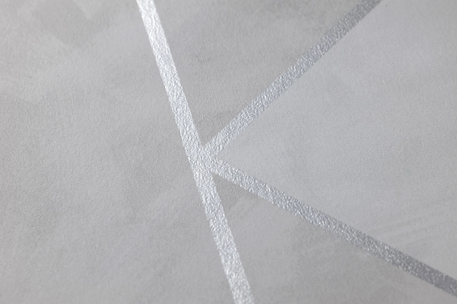 Verschieden große Dreiecke in Schattierungen von Hellgrau teilen die Fläche Ihrer Wand in geometrische Formen auf. Silbern schimmernde Linien setzen sie wie Fugen voneinander ab und erzeugen schöne Lichtreflexe. Hell und freundlich wirkt die Vliestapete, die elegant und gleichzeitig vielseitig daherkommt. Sie lässt sich auf ganz unterschiedliche Weise kombinieren und macht Ihr Zimmer zu einem Raum voller Licht.