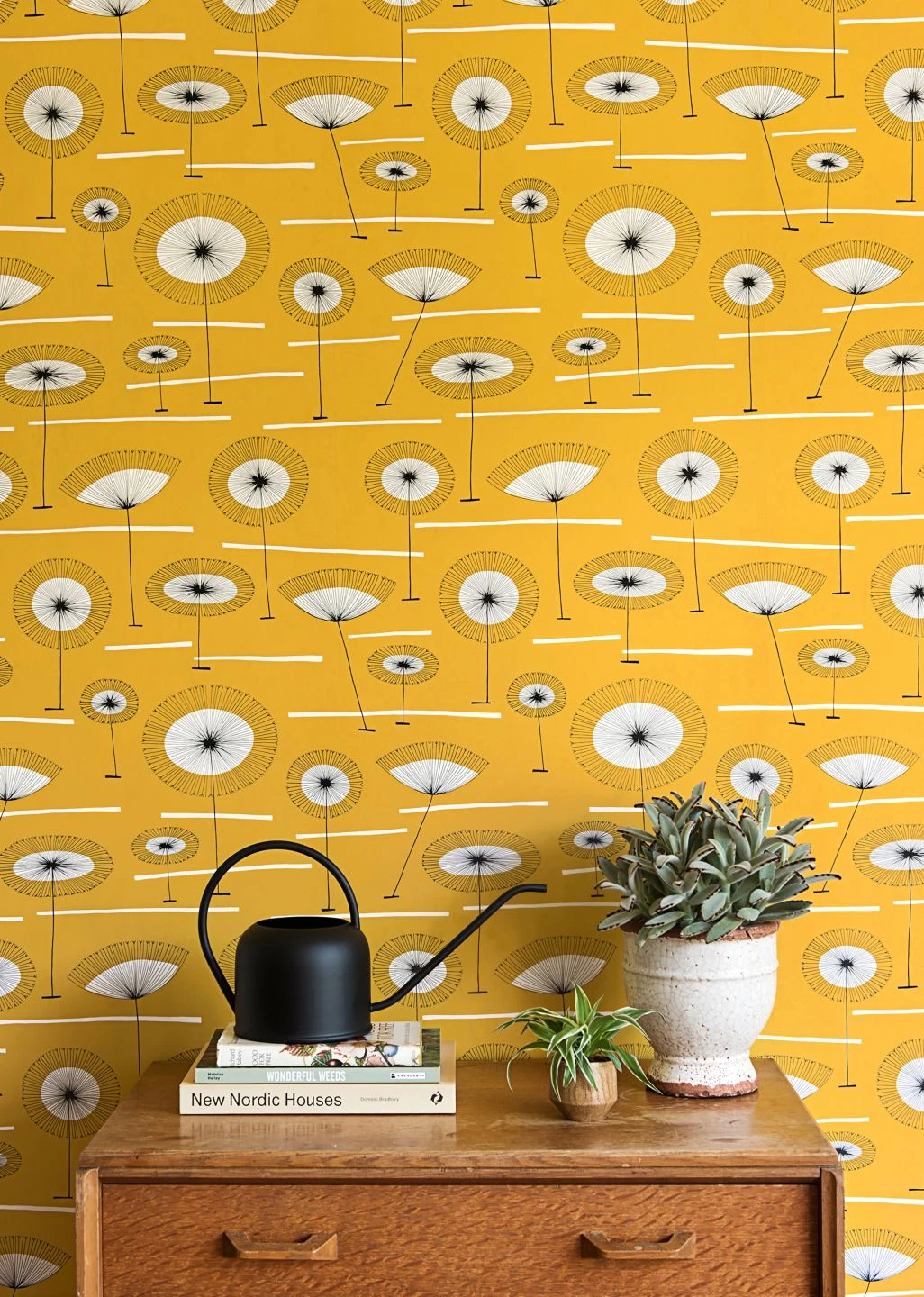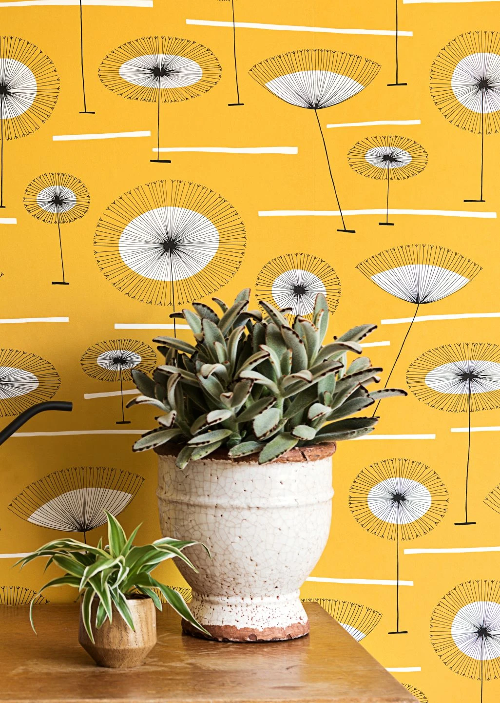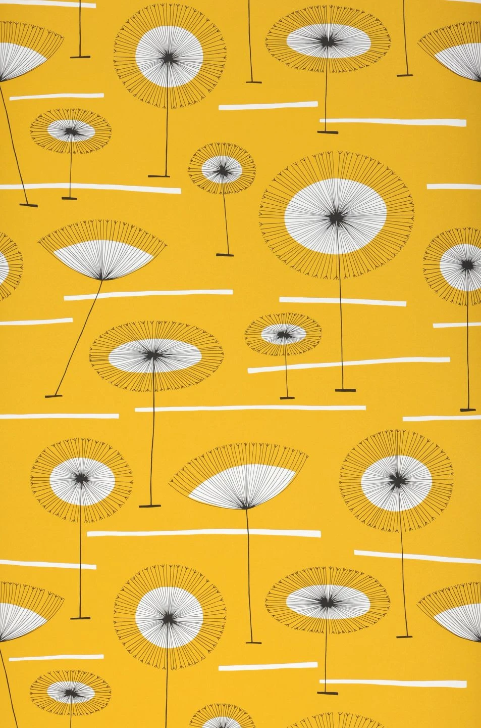 Grafisch äußerst raffiniert ist das Design der Vliestapete Grasslands. Stilisierte Blumen an langen, schlanken Stielen wachsen auf dem sonnengelb leuchtenden Grund. Wenige weiße Streifen deuten den Boden an, die Farbe des Untergrunds lässt an einen heißen Sommertag denken. Das sommerliche Strahlen, das die Tapete in Ihren Raum bringt, nutzt das einfallende Licht in jedem Winkel voll aus und bietet Ihnen ein Umfeld voller guter Laune und Sommer-Feeling.