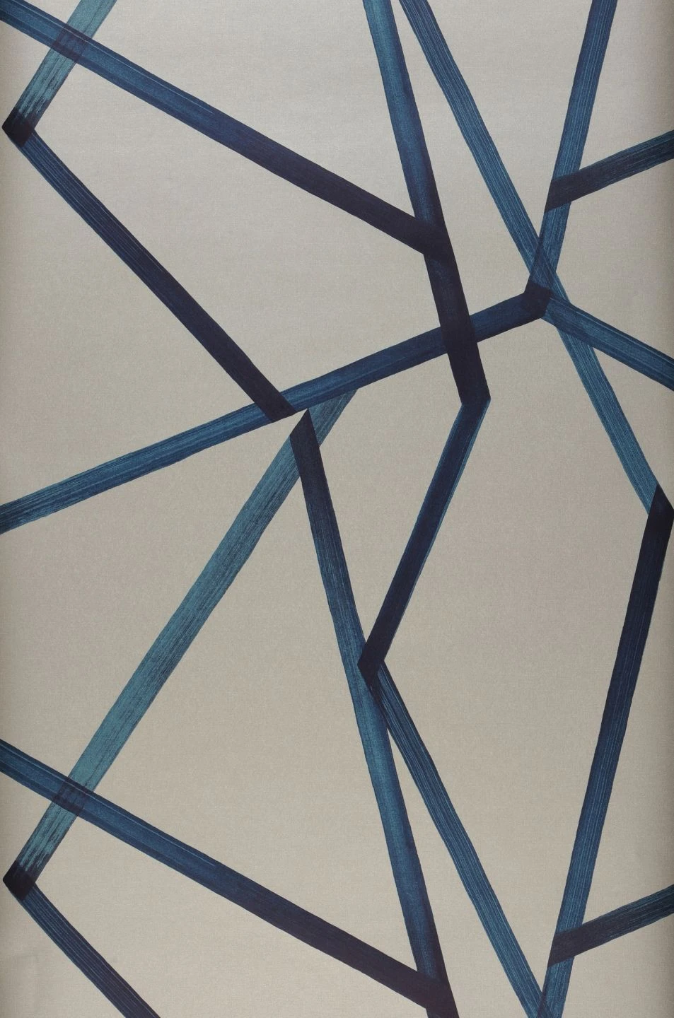 Aus einfachen geraden Pinselstrichen ergibt sich die ausgeklügelte geometrische Struktur dieser modernen Tapete. Vom sanft schimmernden steingrauen Grund heben sich die dunklen Blautöne des Musters angenehm ab. Die Farbverläufe erwecken den Eindruck dreidimensionaler Tiefe wie bei einer abstrakten Skulptur. So begrenzt Holika den Raum und scheint ihn gleichzeitig nach außen zu öffnen. Geschwungene Möbelkonturen bilden einen reizvollen Kontrast zu ihren geraden Formen.