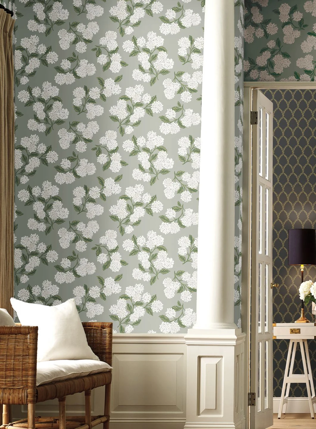 Die großen, kugelförmigen Blütenstände der Hortensie im typischen handgemalten Stil von Rifle Paper machen die Vliestapete „Hydrangea“ außergewöhnlich. Schneeweiße Blütenbälle, nur durch sparsame Pinselstriche strukturiert, und Blätter in verschiedenen Grüntönen erzählen vom Sommer auf dem Land. Gestalten Sie mit dieser Tapete ein individuelles Zuhause! Gerade weiße Möbel unterstreichen die Ausstrahlung von „Hydrangea“ reizvoll.