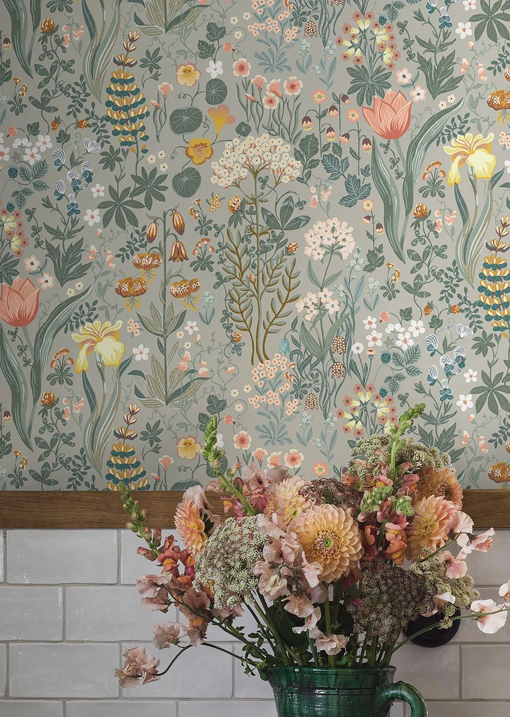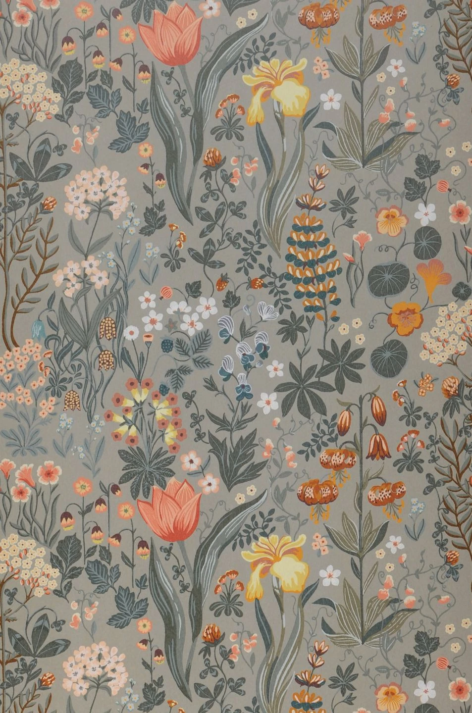 Sehr geschmackvoll kombiniert die über und über mit Blumen bedeckte Vliestapete Isabelle die gedeckten Grüntöne der Blätter und den steingrauen Untergrund mit ausgewählten Farbtönen: Hellgelb, Orangebraun, Ozeanblau und Rosa leuchten die Blüten und bilden einen harmonischen Gesamteindruck. Gerade für Ihre Einrichtung im skandinavischen oder im Landhaus-Stil steuert die Tapete den perfekten Hintergrund bei. Möbel in einer der verwendeten Farben machen das Design komplett.
