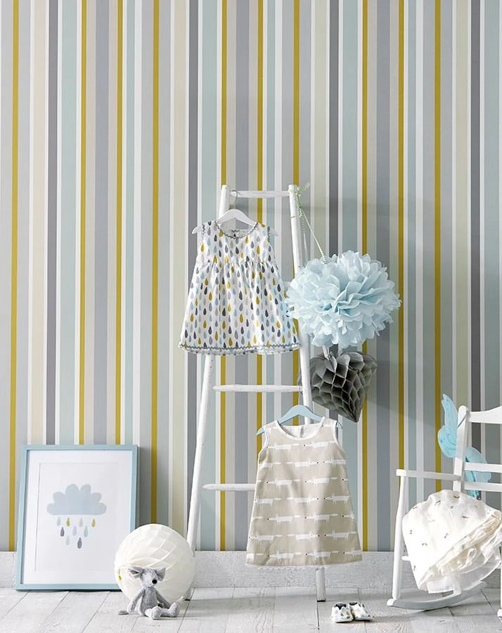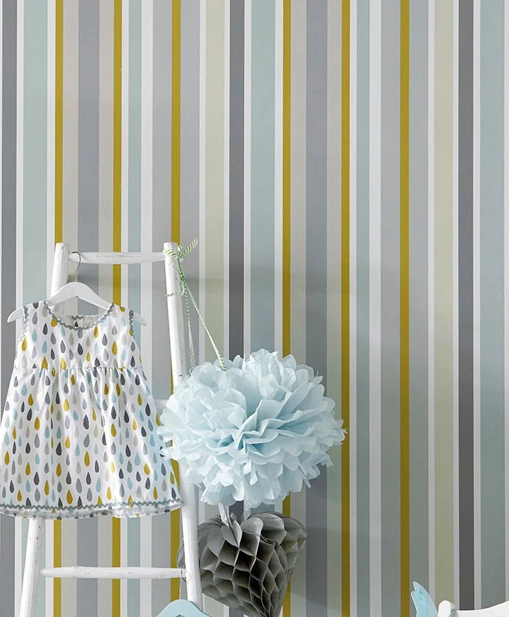Vielfältige Streifen in Weiß, Pastell- und Grautönen werden immer wieder aufgepeppt durch augenfälliges Hellgraubeige. Die Papiertapete bringt gleichzeitig Struktur und Lebendigkeit an Ihre vier Wände – durch die Farbwahl ebenso wie durch die unterschiedliche Breite der Streifen. Je nachdem, ob Sie die Höhe des Raumes oder die Breite und Tiefe betonen möchten, können Sie die Streifen längs oder quer anbringen und erhalten ganz unterschiedliche Raumwirkungen.