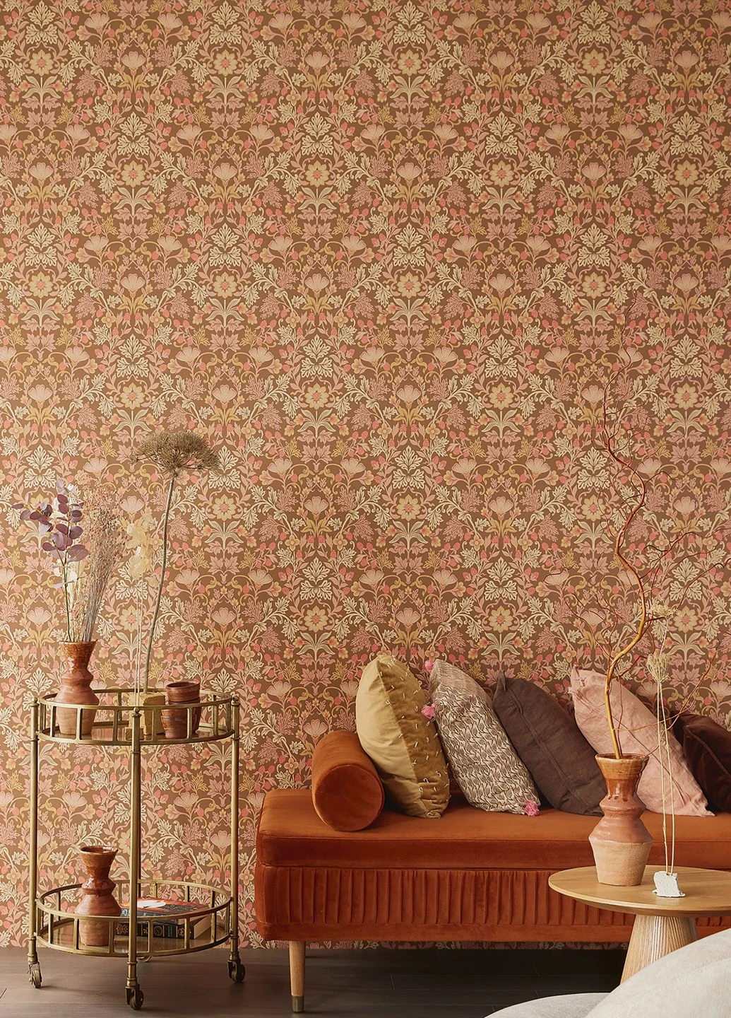 Die prächtige Fülle eines klassischen Blumendesigns trifft auf attraktive, warme Rosa- und Beigetöne, die einen Hauch von Vintage-Charme verströmen. Blüten, Beeren und Ranken in einer barocken Stilisierung und fast unmerklich symmetrischen Anordnung verschönern Ihren Raum voller Ausdruck. Greifen Sie die hellen Farbtöne der Tapete auf oder setzen Sie ihr dunkle, antike Holzmöbel als reizvollen Kontrast entgegen.