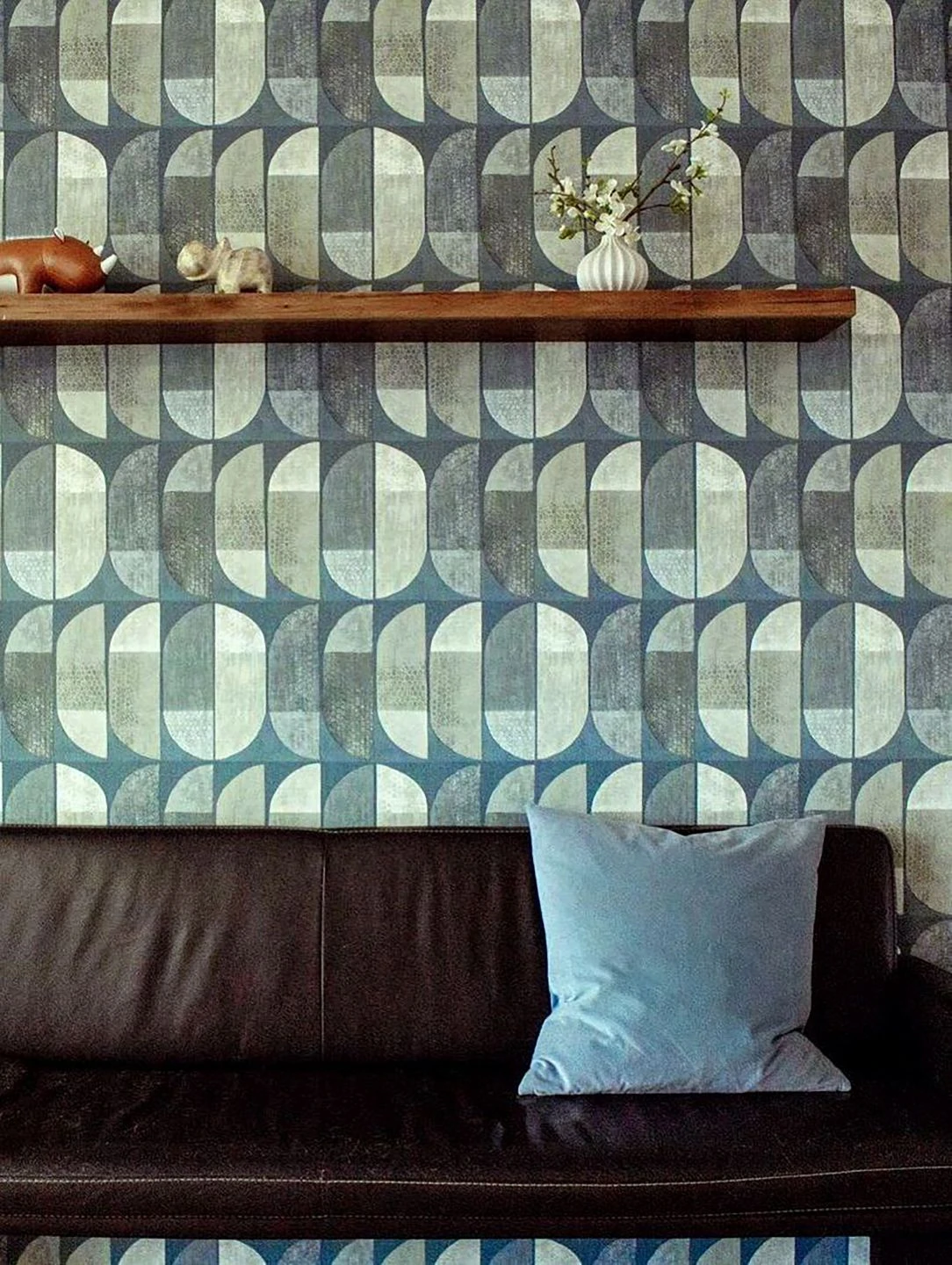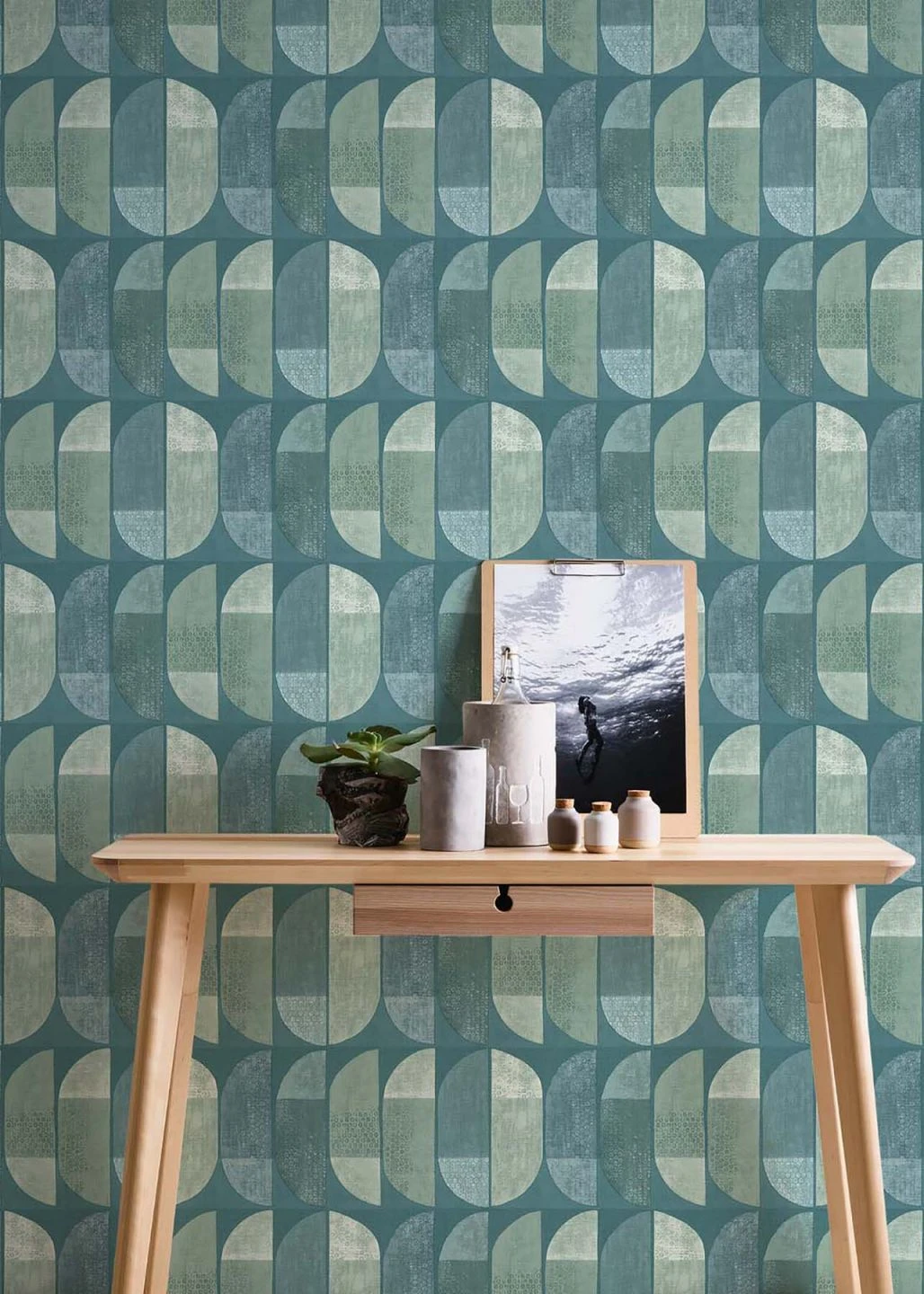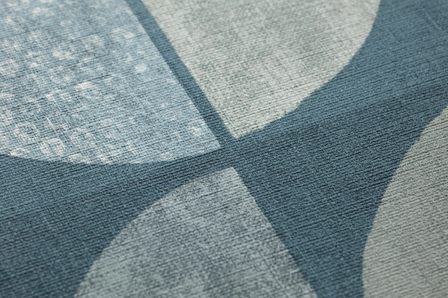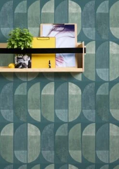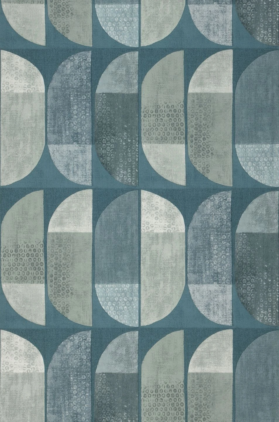 Grün- und Blautöne in verschiedenen Nuancen und Helligkeitsstufen herrschen vor im graphischen Muster dieser Vliestapete und bringen die Farben des Ozeans an Ihre vier Wände. Zarte Muster strukturieren die Farbflächen. Die besondere Oberfläche aus Vinyl hat einen fühlbar textilähnlichen Charakter. Gleichzeitig ist sie bestens dafür geeignet, Ihr Badezimmer zu verschönern.