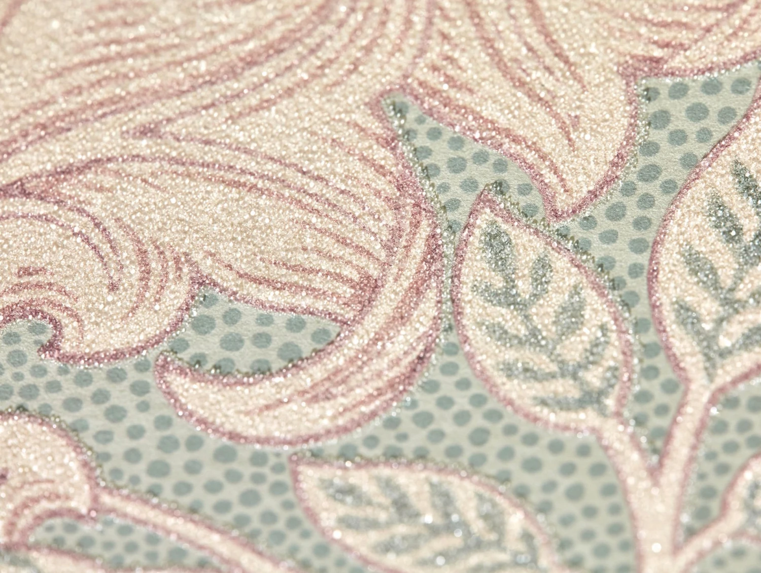 Wie ein feiner textiler Wandbehang, der einst die edlen Gemächer der Adeligen zierte, mutet die hochwertige Glasperlen Tapete mit fühlbarem Relief an. Die zarten Ranken und Blüten, die nebulös erscheinen, werden vom Licht wachgeküsst und funkeln wie kleine Diamanten, was den besonderen Reiz der Design Tapete ausmacht.