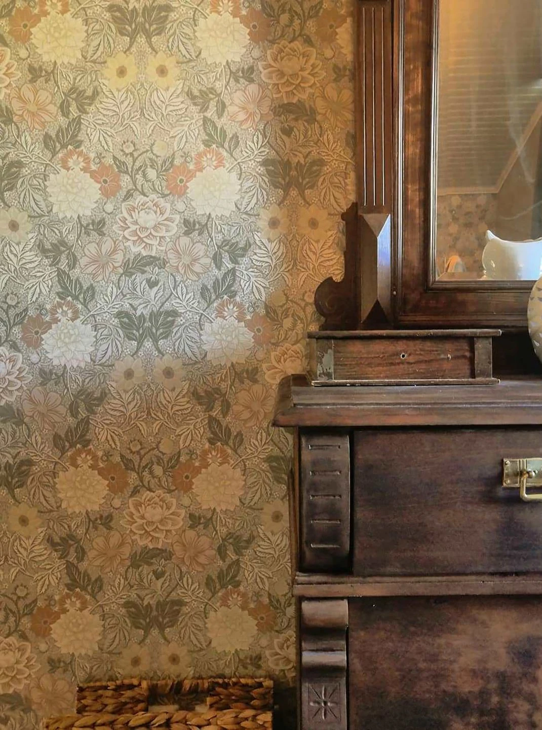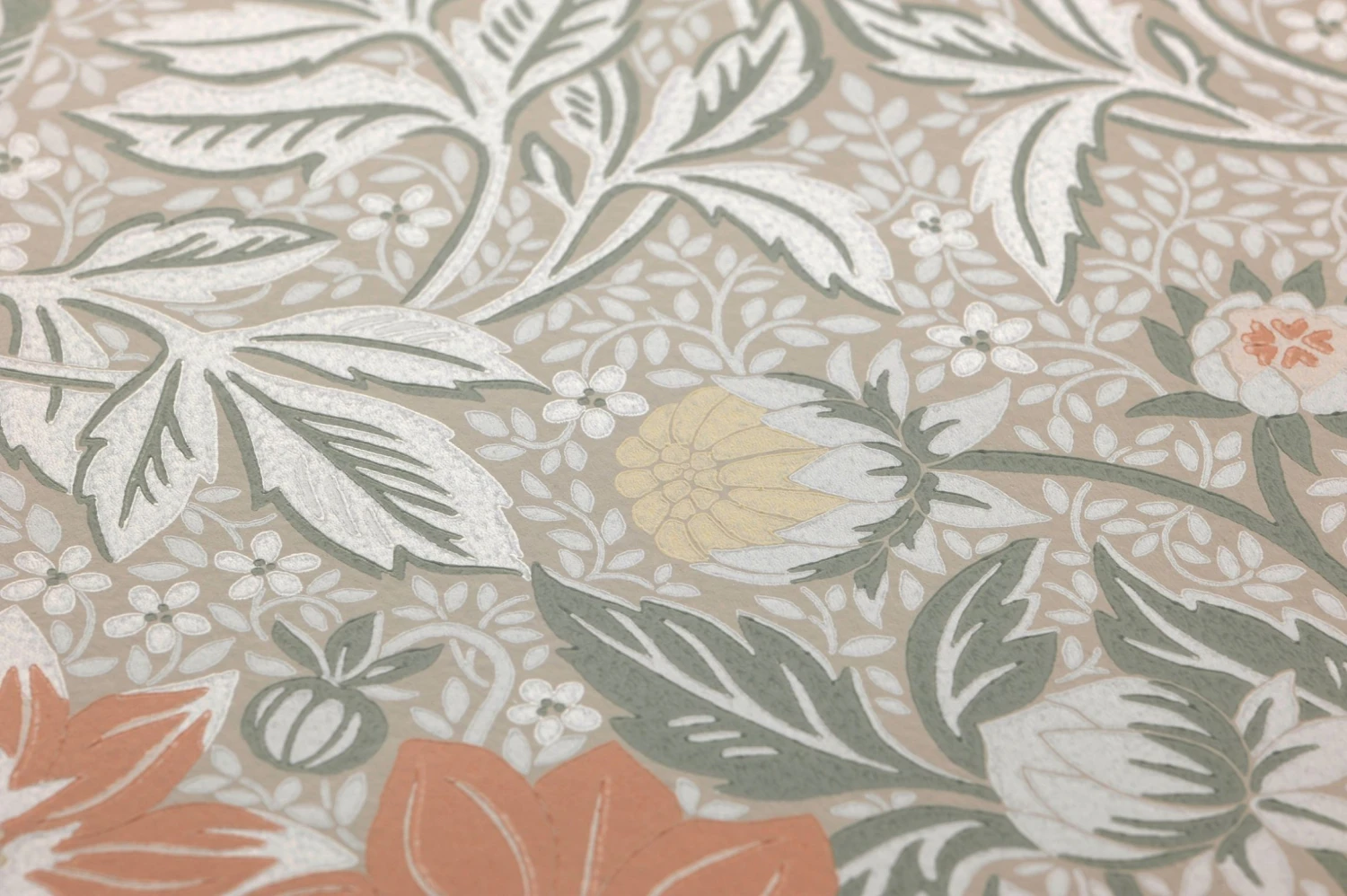 Ein Hauch von Nostalgie zieht mit der Vliestapete „Kerala“ und ihrem an die Ära des Jugendstils erinnernden Blumenmuster bei Ihnen ein. Die im Leimdruckverfahren bedruckte Tapete arrangiert eine wahre Fülle verschiedener Blüten und Blätter so, dass eine symmetrische Ordnung entsteht. Die zueinander passenden hellen Farben auf graubeigem Grund strahlen Harmonie aus und sorgen dafür, dass Sie den Wandschmuck vielfältig kombinieren können.