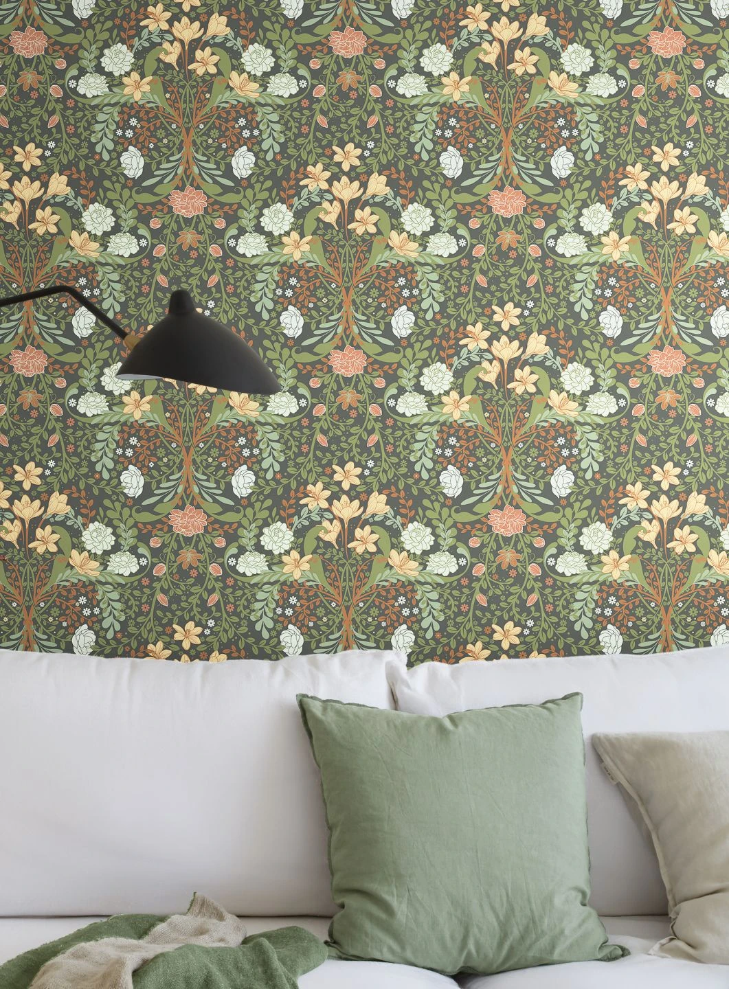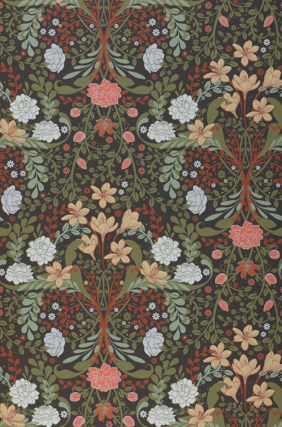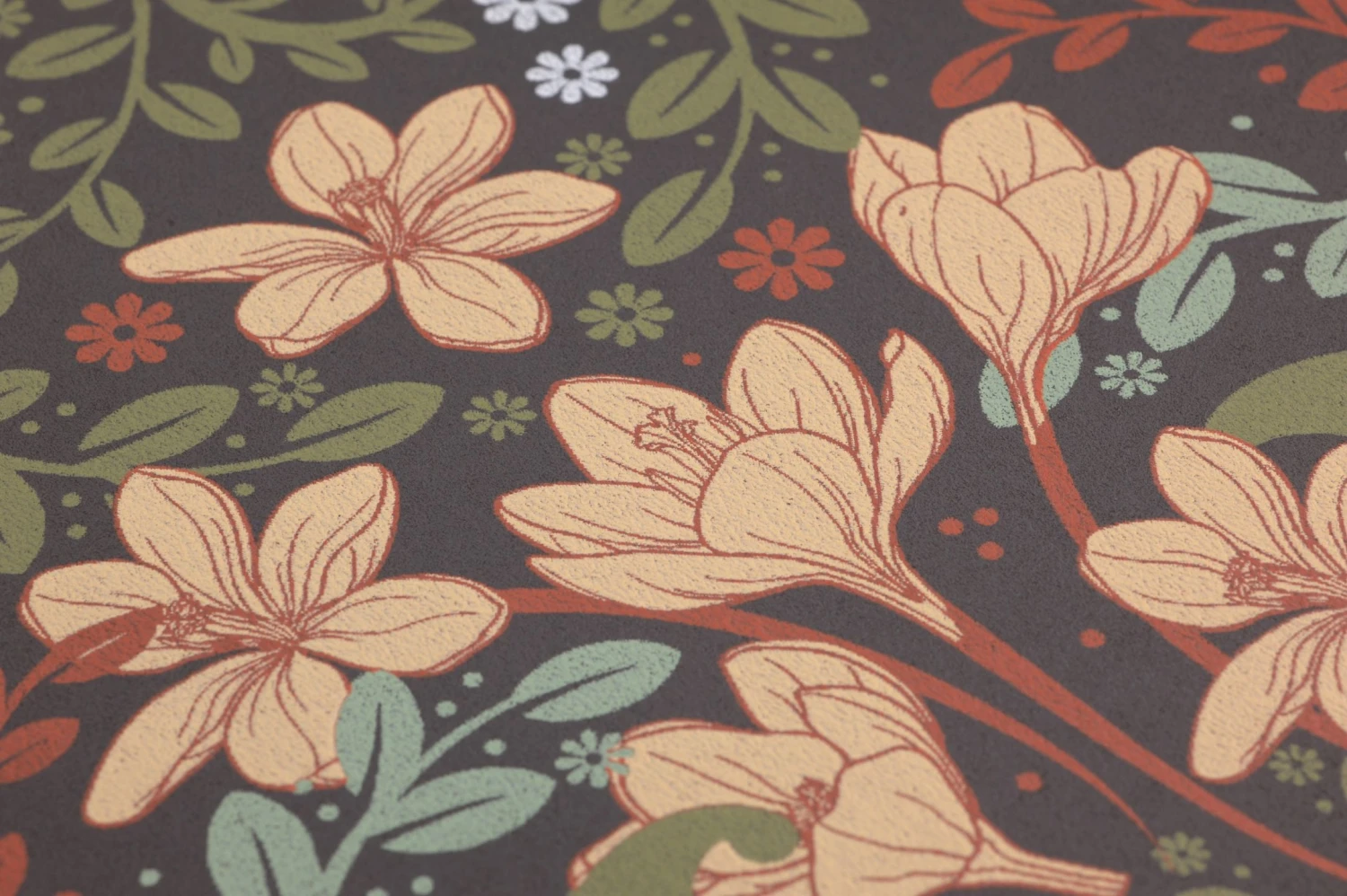 Ein wenig Nostalgie bringt Tapete Kristina mit ihrem traditionellen Blumenmuster im englischen Stil mit in Ihre vier Wände. Die Farbgebung deckt eine große Bandbreite von Weiß über Hellelfenbein bis hin zu Rot ab. Stilisierte Blüten und Blattranken bedecken den graubraunen Hintergrund fast lückenlos und erhalten farbliche Akzente durch Konturen in Kupferbraun. Mit der hochwertigen Vliestapete unterstreichen Sie die Wirkung von ins Rötliche spielenden Holztönen besonders vorteilhaft.