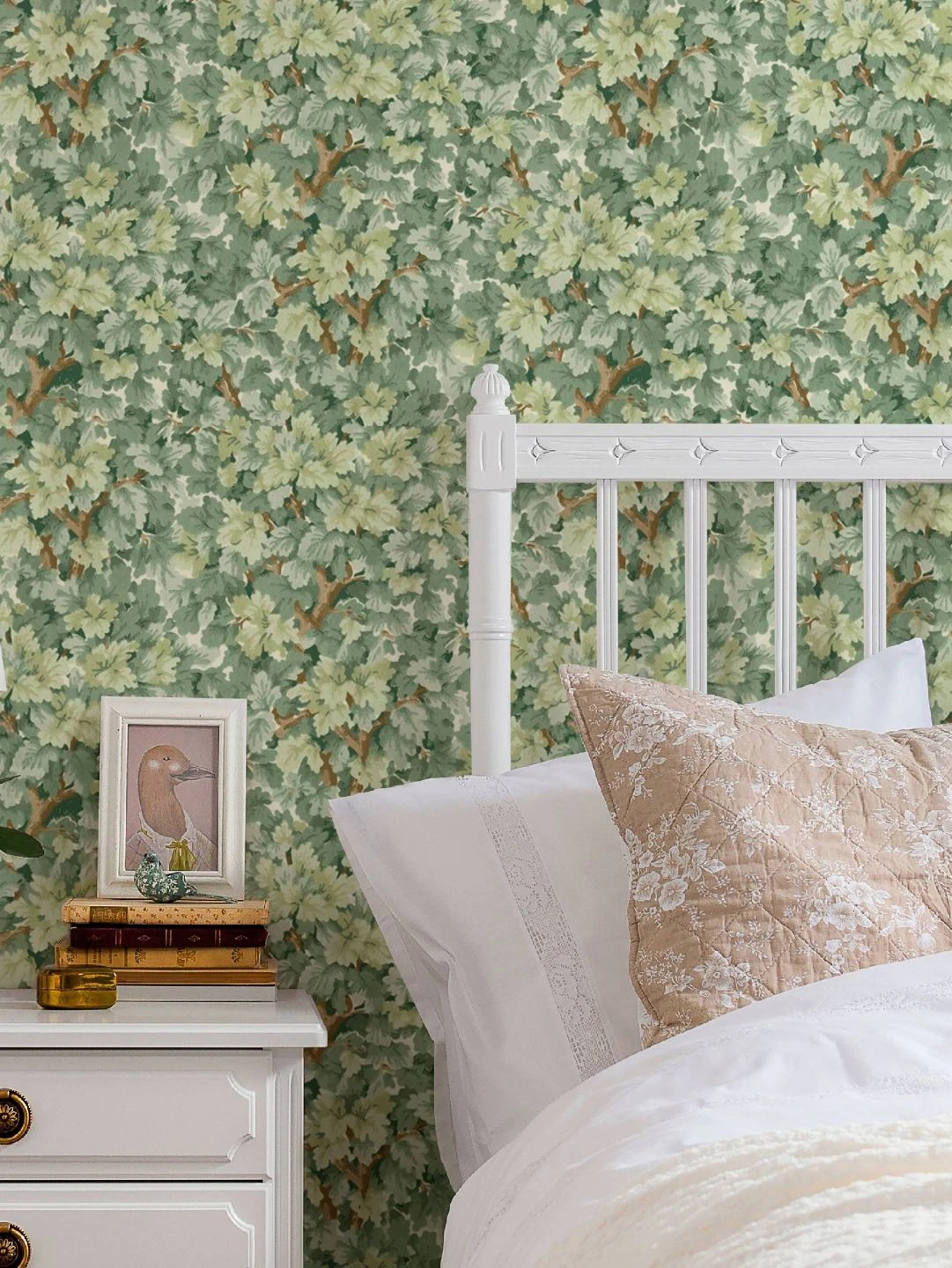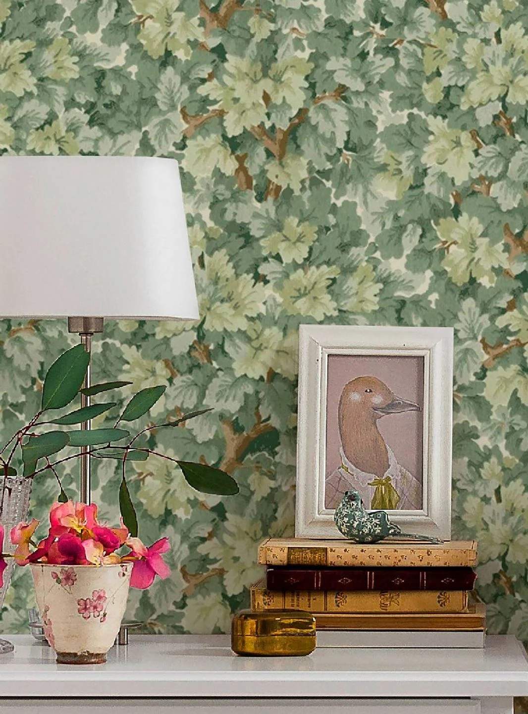 Beschützt und geborgen wie Dornröschen hinter ihrer hohen Hecke können Sie sich mit der hochwertigen Papiertapete „Kutani“ fühlen. Auf dem weißen Grund ranken sich Zweige und Blätter in beruhigenden Grün- und Brauntönen über die ganze Fläche Ihrer Wand. Man meint, die angenehme Kühle zu spüren, die das dichte Laub Ihrem Raum spendet. Durch das Leimdruckverfahren hat die Tapete die besondere Ausstrahlung traditionellen Handwerks.