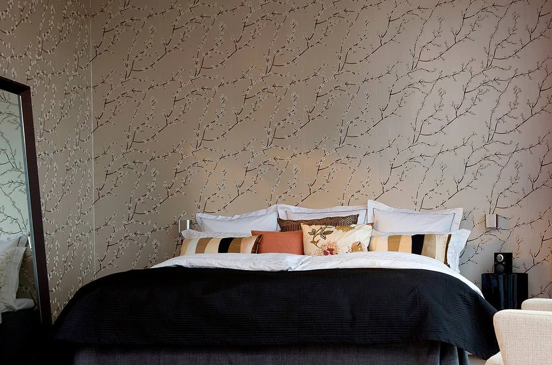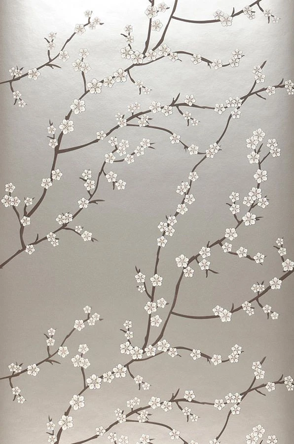 Diese glamouröse Tapete mit effektvollem Silbergrau-Schimmer und euphorisch wachsenden Kirschblütenzweigen wird Ihre Sinne verzaubern. Die florale Schönheit vereint natürliche Musterelemente mit luxuriösem Glanz. Entdecken Sie die nimmermüden Verzweigungen, die sich dem Licht entgegenstrecken und dabei einen diagonal verlaufenden Weg einschlagen. Die hochwertige abwaschbare Vliestapete bietet sich für Akzentwände oder die vollflächige Gestaltung gleichermaßen an.