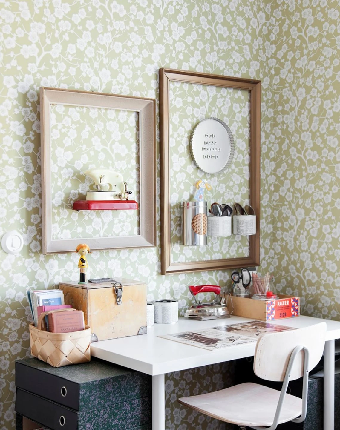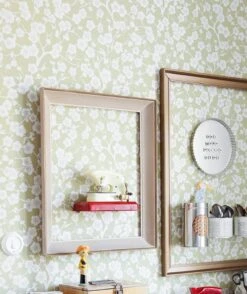 Die weißen Silhouetten blühender Kirschzweige auf dem grünbeigen Grund machen Laila zu einer perfekten Ergänzung des Landhaus-Stils oder des skandinavischen Stils. Das traditionelle Leimdruckverfahren, das für die Herstellung der hochwertigen Papiertapete angewendet wurde, lässt sie besonders exklusiv wirken. Ihre hellen Farben passen perfekt zu weißen oder hellen Naturholzmöbeln für ein gemütliches Wohngefühl.