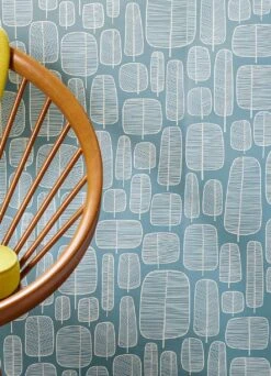 Auf hellblauem Hintergrund wird mit einfachen Linien und Schraffuren ein stilisierter Wald angedeutet. Die verschiedenen Silhouetten deuten verschiedene Baumarten an und bilden zusammen einen freundlichen Wald, der licht und leicht wirkt. Modern und gleichzeitig zeitlos schmückt die Vliestapete Ihre Wände mit ihren zarten Farben und Formen.