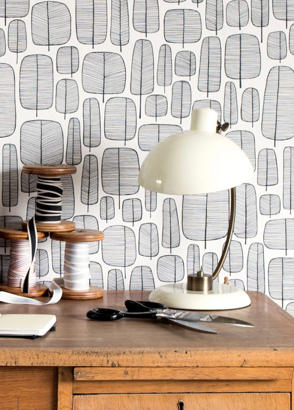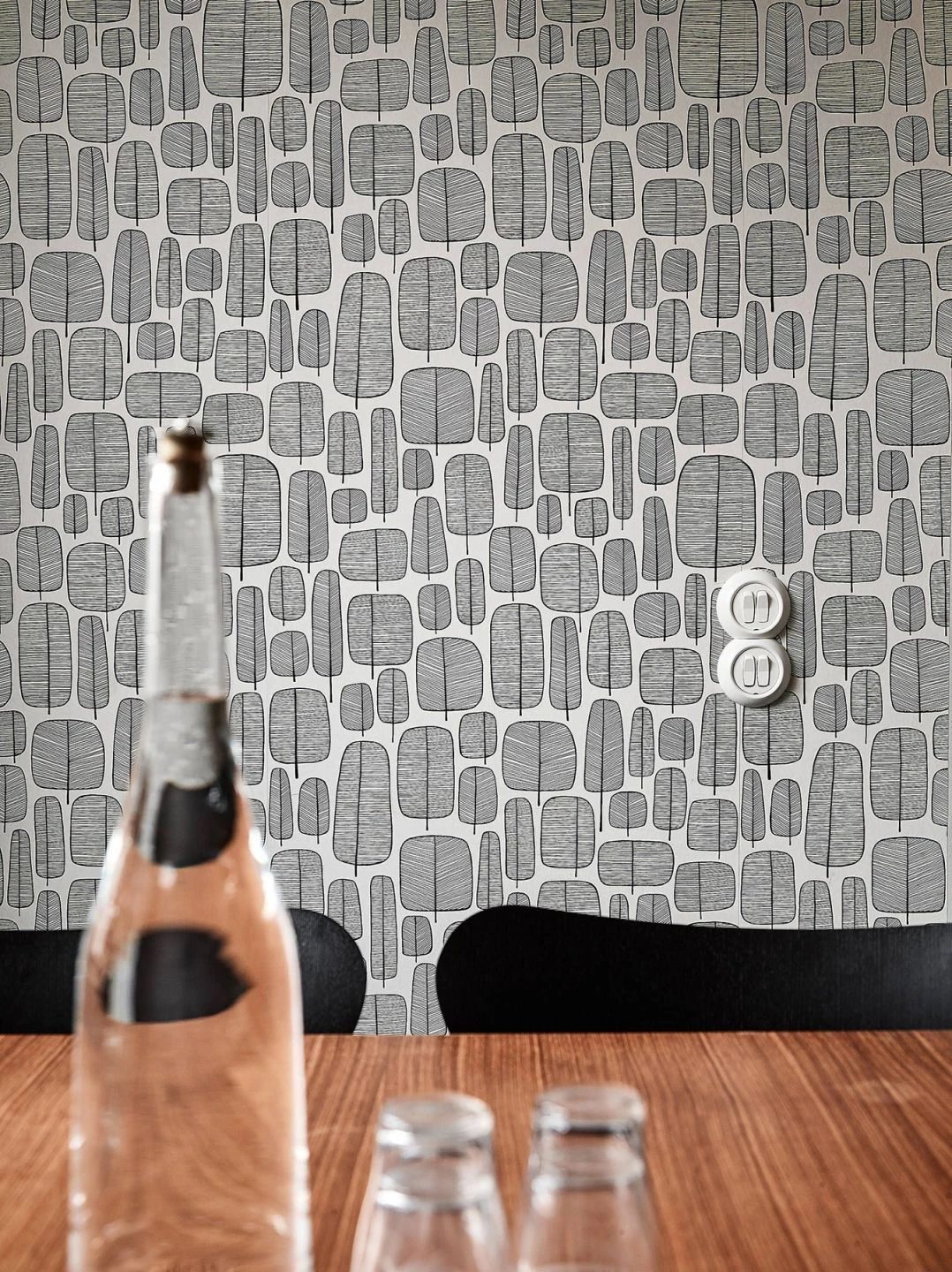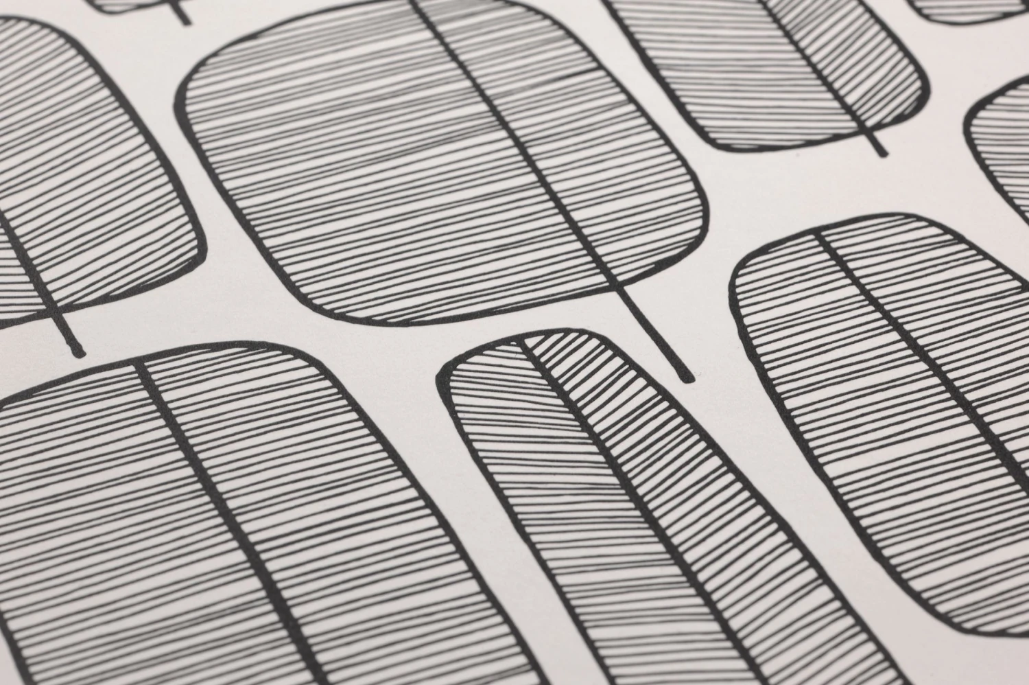 Fast comicartig wirken die stilisierten schwarzweiß schraffierten Bäume, deren Formenvielfalt einen Mischwald entstehen lässt. Durch die monochrome Farbgestaltung wie bei einer Federzeichnung entsteht ein abstrakter Eindruck. Gleichzeitig erlaubt die Vliestapete praktisch jede Kombinationsmöglichkeit: Da sie sich mit schwarzen Linien auf weißem Grund begnügt, rückt sie die Möbel in Ihrer Lieblingsfarbe auf jeden Fall in den Mittelpunkt!