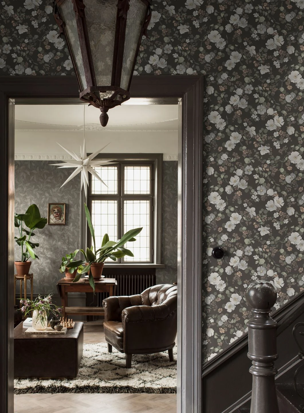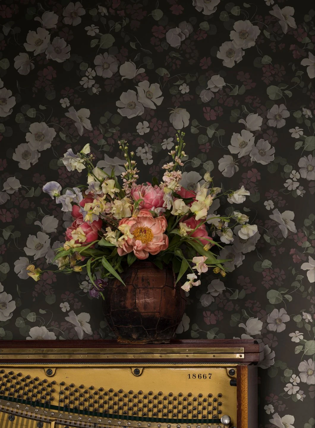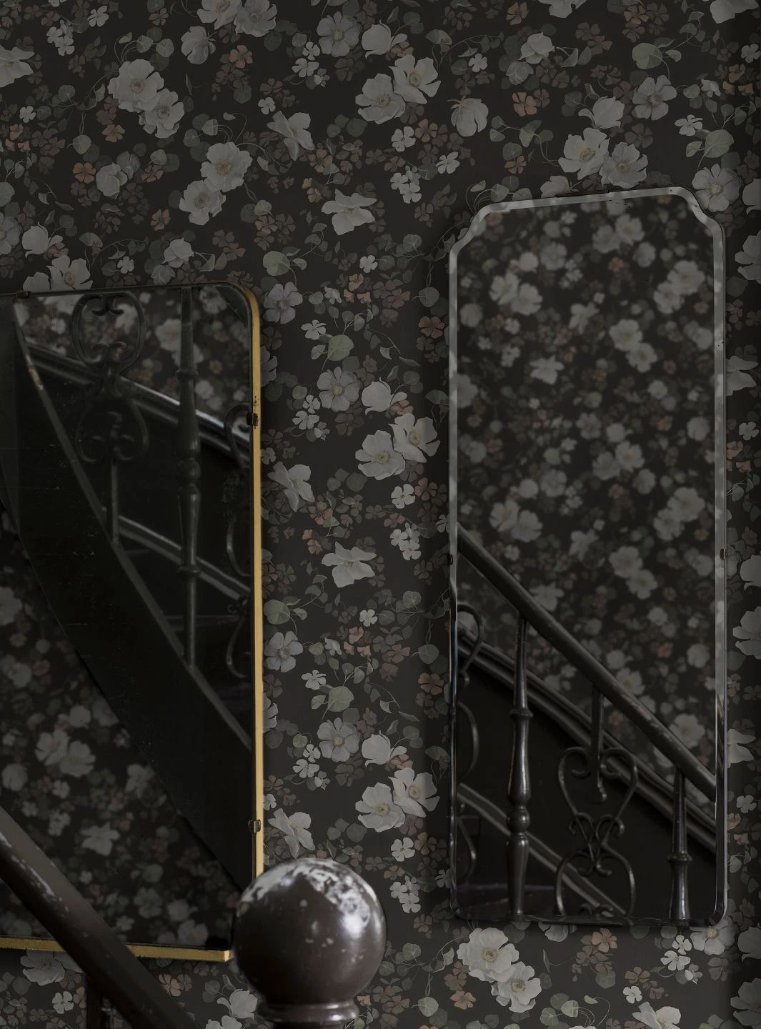 Das Spiel von Licht und Schatten auf den üppigen Blüten und Blättern lässt diese besonders natürlich wirken und fast plastisch aus der Fläche der Tapete hervortreten. Die Farbwahl beschränkt sich auf verschiedene Schattierungen von Beigerot, Grauweiß und Moosgrau. So belebt Manon Ihre Wand, ohne dabei zu aufdringlich zu werden. Eine ungeheuer stilvolle Verschönerung für skandinavische oder Landhaus-Einrichtung.