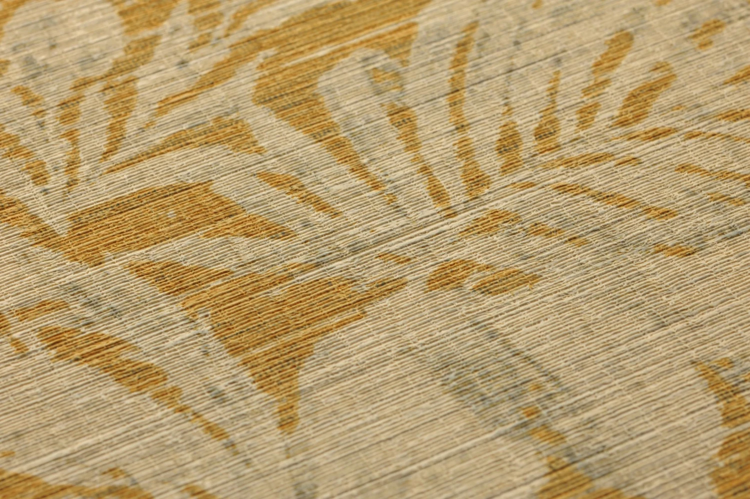 Auf einem leuchtend currygelben Untergrund zeichnen sich schemenhaft cremefarbene exotische Pflanzen ab. Leichte graue Schattierungen lassen die Blumen, Blätter und Zweige leicht plastisch wirken. In die Vinyloberfläche ist eine feine, textilähnliche Struktur eingearbeitet, die ein wenig an einen gewebten Wandbehang erinnert. Gleichzeitig ist die Oberfläche scheuerbeständig und sorgt dadurch auch in Ihrem Badezimmer für sonnige Stimmung bei jedem Wetter.