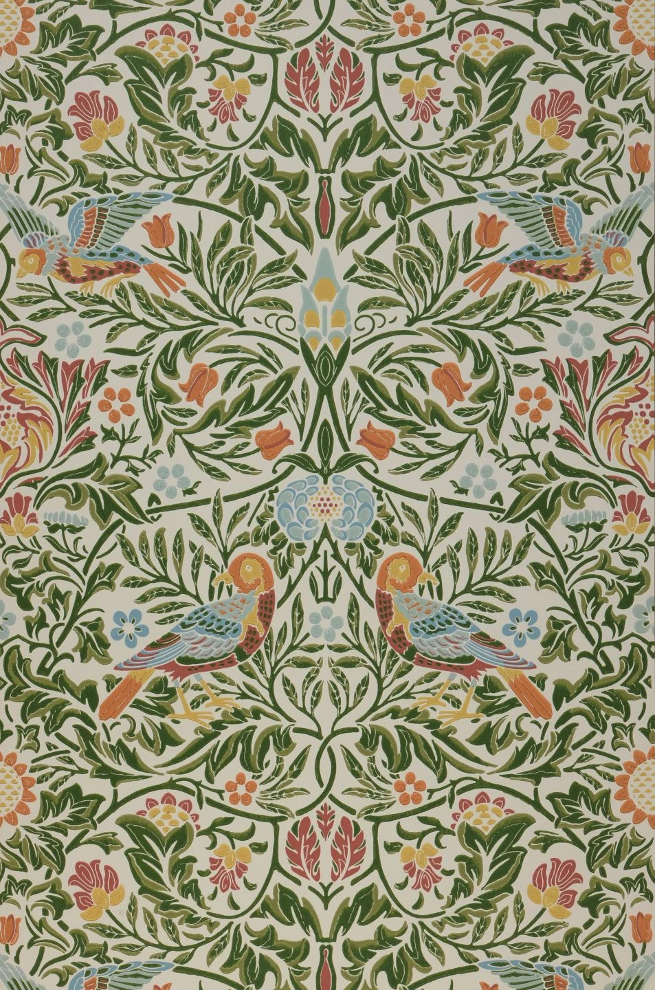 - MusterfarbeBlassorangebraun, Blautöne, Ginstergelb, Hellbraunrot, Laubgrün, Olivgrün