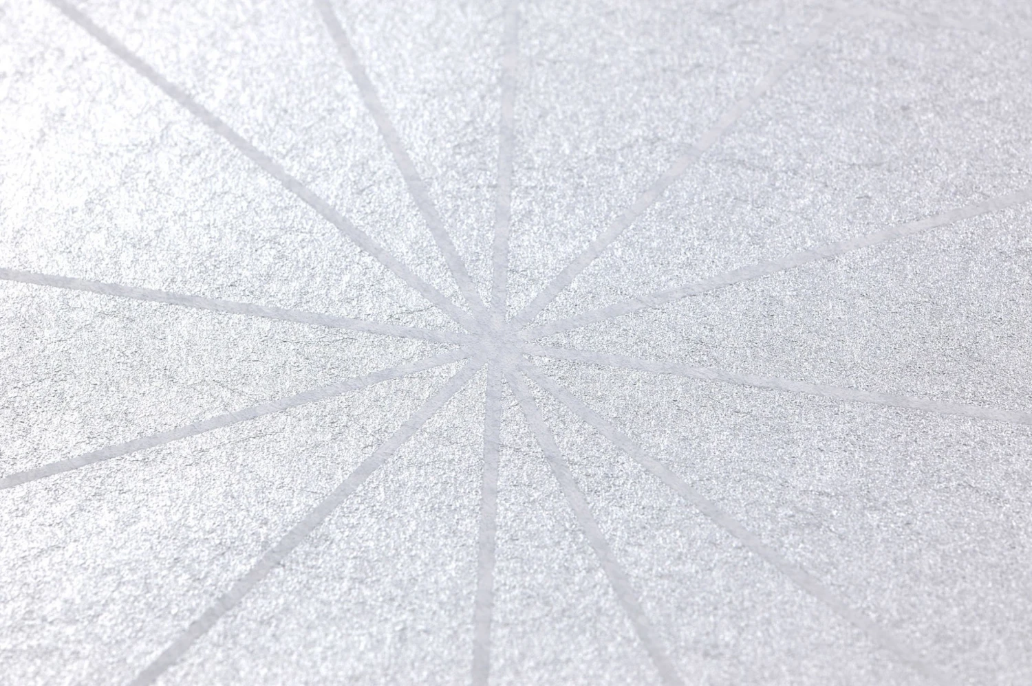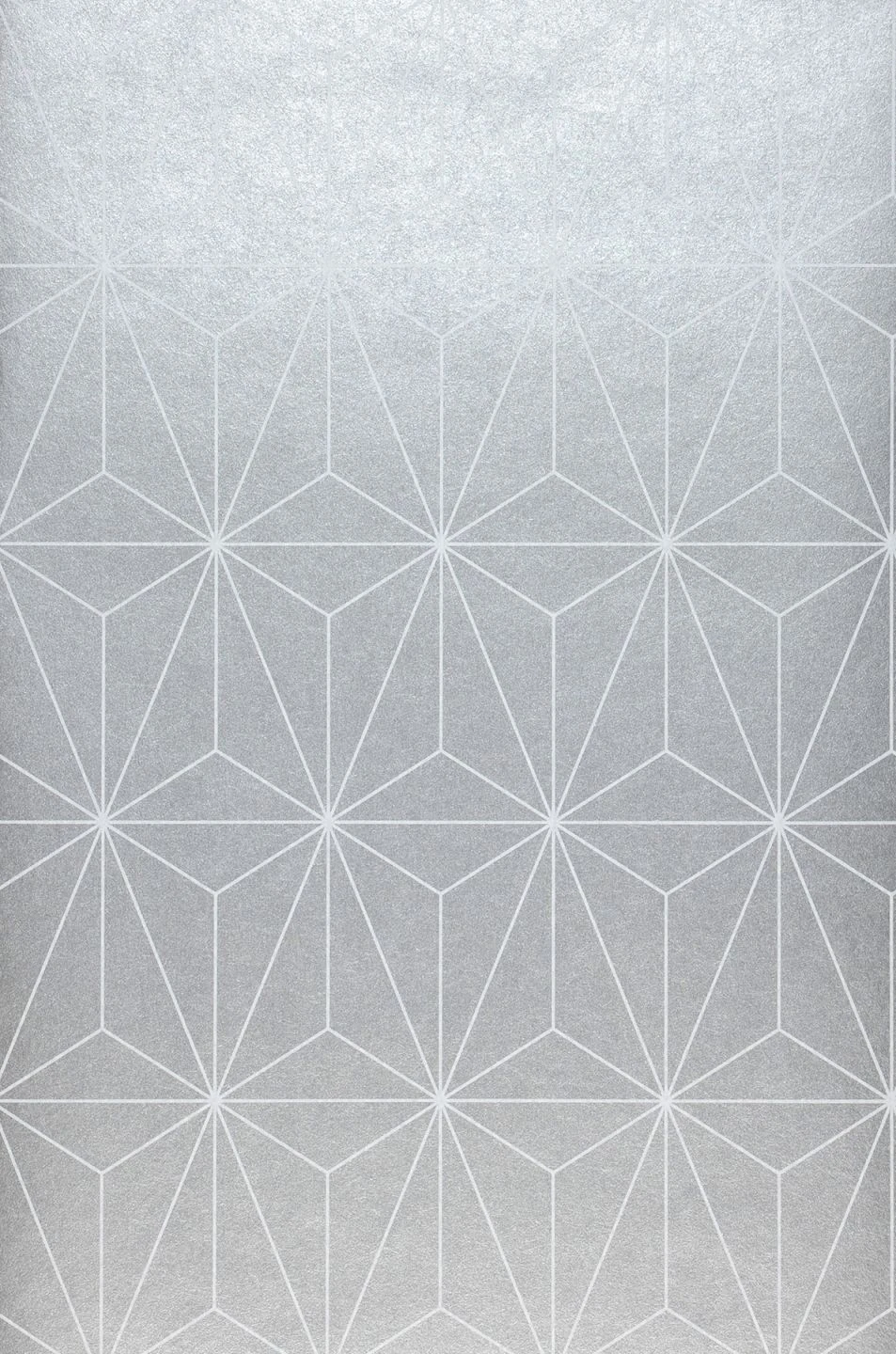 Kunstvolle Prismen-Geometrie, die ein energetisches Raumgefühl erzeugt, ohne dabei zu überfordern – Design Tapete Morton eröffnet Weite und Großzügigkeit. Auf dem silbergrau schimmernden Grund entfaltet das galaktisch anmutende Muster eine strahlende Dynamik. Ideal für die Raumgestaltung mit spacig-modernen Touch.