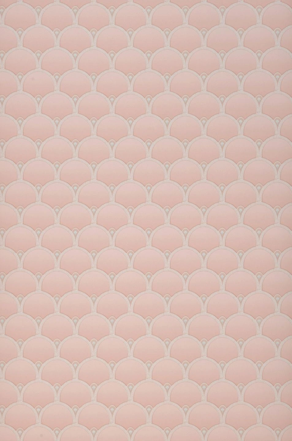 Runde Bögen bilden ein gleichmäßiges Muster, dessen Fächerformen ein Gestaltungselement des Art Deco aufgreifen. Zartes Hellrosa mit einem sanften Farbverlauf, abgesetzt mit Cremeweiß, Hellgrau und Rosenholz, wirkt jugendlich und freundlich. Moxie passt zu weißen oder auch rosafarbenen Einrichtungselementen, gibt aber auch einen reizvollen Kontrast zu dunklem Holz. Die glatte Vinyloberfläche ist hoch waschbeständig und damit auch fürs Badezimmer perfekt geeignet.