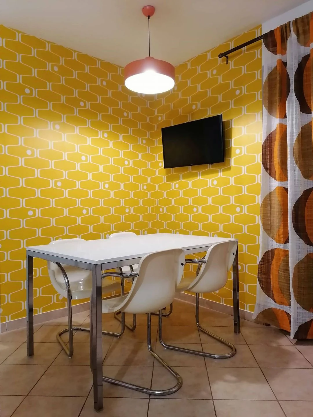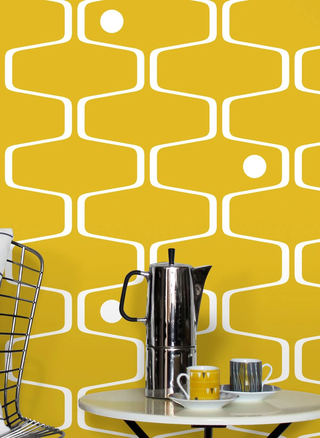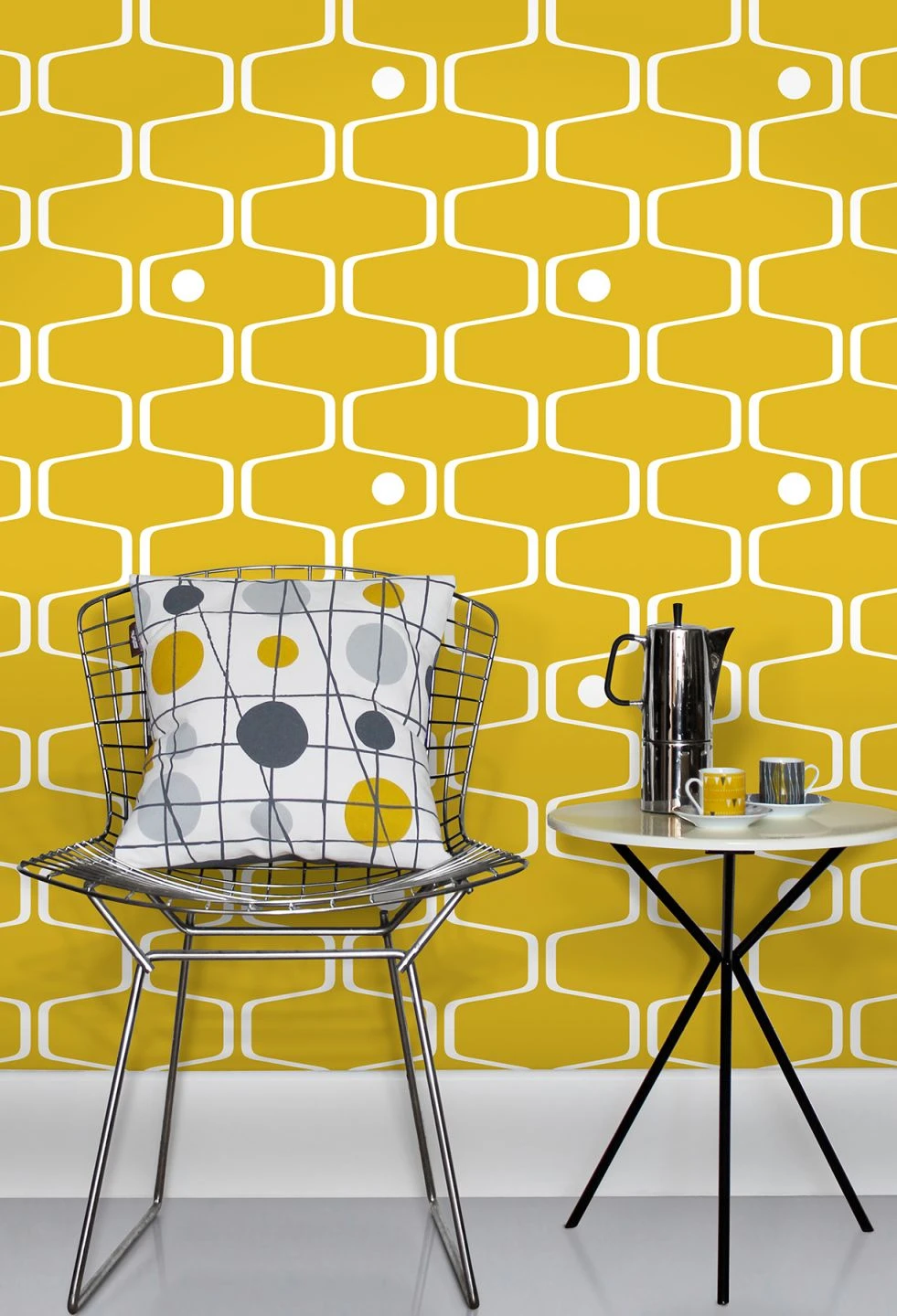 Gelb und Weiß und ein verspieltes Waben-Punktemuster machen den Vintage-Look perfekt. Tauchen Sie ein in die spritzigen 60er und 70er Jahre und lassen Sie das kultige Lebensgefühl mit der geometrischen Designtapete aufleben. Design-Möbelklassiker aus Draht, Metall und Kunststoff sind das Nonplusultra für die Einrichtung.