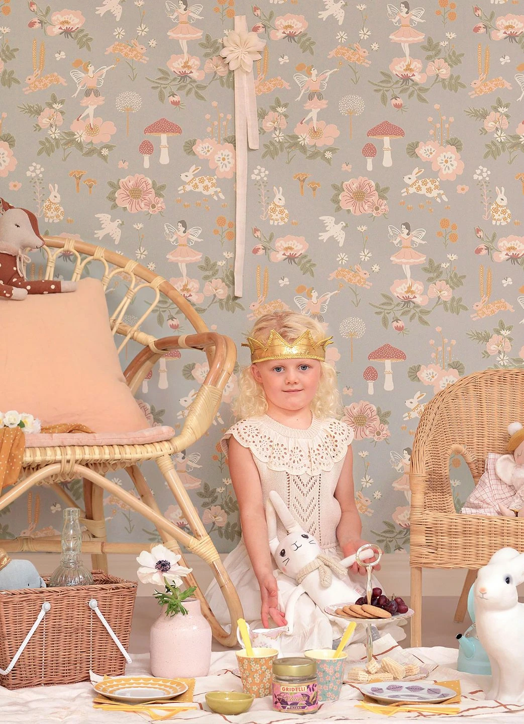 Das Kinderzimmer wird zu einer märchenhaften Welt voller Feen und Tauben, Heckenrosen und Häschen, Schmetterlinge und Pilze mit der zauberhaften Tapete „Old Garden“ aus dem Hause Majvillan. Die Illustrationen sind kindgerecht und zeitlos. Das traditionelle Leimdruckverfahren, mit dem sie auf die Tapete gedruckt wurden, gibt ihnen zusätzlichen Charme. Die Vorstellungskraft Ihres Kindes wird durch die phantasievollen Figuren spielerisch angeregt.