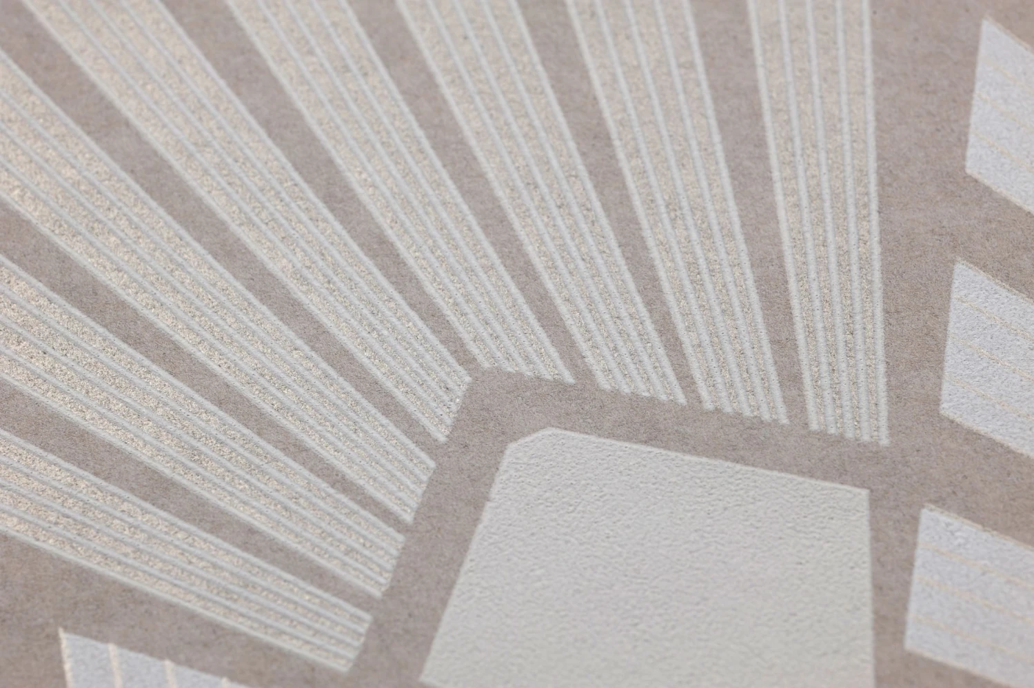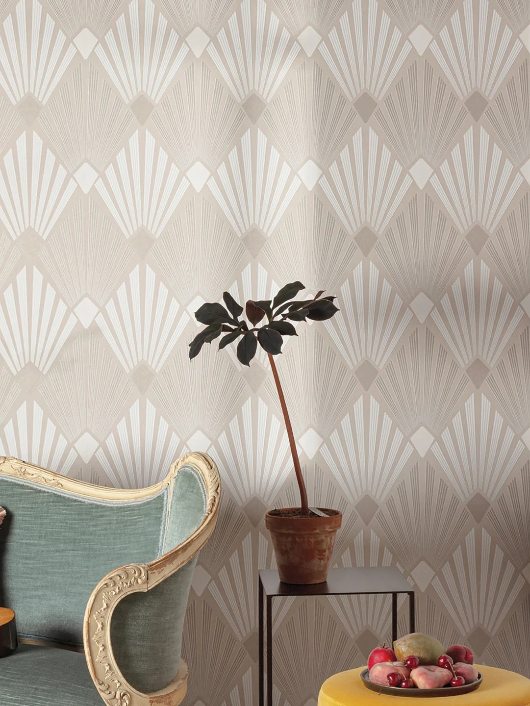 Die perfekte Synthese aus Vintage-Design in der Ästhetik des Art Deco und aktuellem Understatement findet sich in der Gestaltung von Pontinius. Die typischen fächerförmigen Elemente, die im Art Deco so beliebt waren, kommen auch in den eng verwandten, zurückhaltenden Beige- und Weißtönen wunderbar zur Geltung. Das abstrakte Fächermuster gewinnt durch die Farbwahl an Charisma, ohne sich allzu sehr in den Vordergrund zu drängen.
