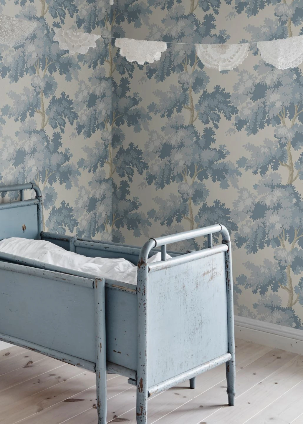 Der Zauber dieser Vliestapete liegt in den sanften, harmonisch aufeinander abgestimmten Farben. Auf dem cremeweißen Grund sind die mit einfachen Umrissen stilisierten Bäume in Blautönen und einem hellen Graubeige gehalten. Die Farbgebung lässt eine stille, entspannende Atmosphäre entstehen – ideal dazu geeignet, nach einem turbulenten Tag herunterzufahren und zur Ruhe zu kommen. Stilistisch passt Raphael Trees zu Vintage-Einrichtungen ebenso wie zum Landhaus-Stil.