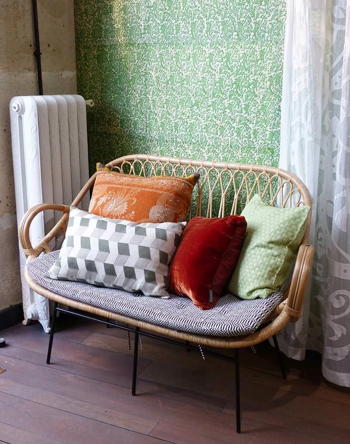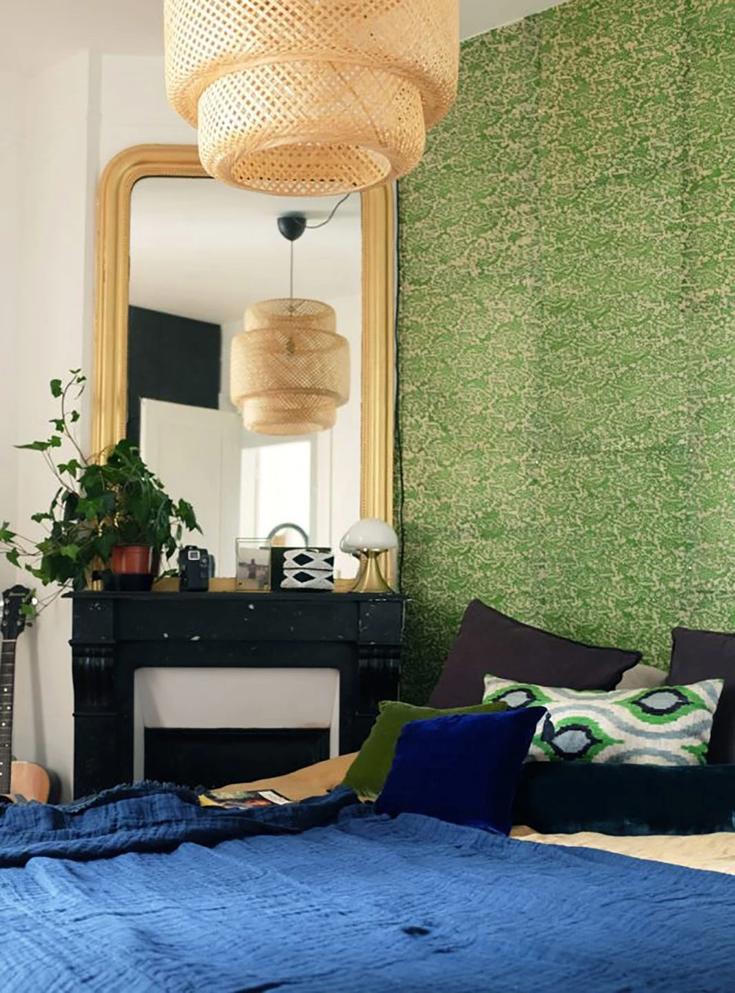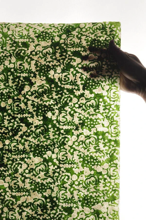 Der grüne Orient zieht durch diese einzigartige Ornamenttapete mit floralem Design in den Raum ein. Die hochwertige Handdruck-Papiertapete aus dem Hause Le Monde Sauvage, inspiriert von der indischen Batikkunst, lässt Wohnstile wie Shabby Chic oder Boho-Look frisch erblühen. Das reizende Maigrün des Musters auf dem beigefarbenem Fond ist ein Wandlungstalent, das sich den individuellen Lichtverhältnissen anpasst und verschiedene Gesichter zeigt. Bei Tageslicht präsentiert sich Sangpo als Symbiose aus frischem Wiesengrün, im Kunstlicht wie ein Wandschmuck im Märchenpalast des Sultans.