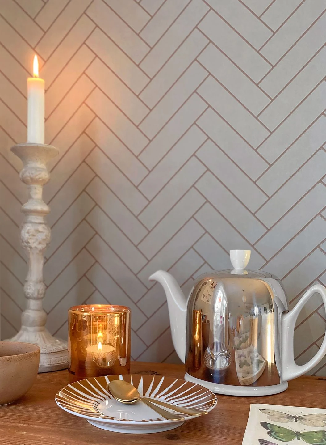 Elegantes Understatement strahlt das klassische Fischgrätmuster aus, das die schwedische Designerfirma Majvillan in dezentem Hellgrau mit braunen Fugen auf ihre Tapete „Scandi Herringbone“ gebannt hat. Die im Leimdruckverfahren hergestellte Vliestapete mit dem regelmäßigen Muster lässt sich mit vielen Farben wirkungsvoll kombinieren und ergänzt Ihren im freundlichen skandinavischen Stil eingerichteten Raum ebenso wie angesagte Landhaus-Einrichtung.