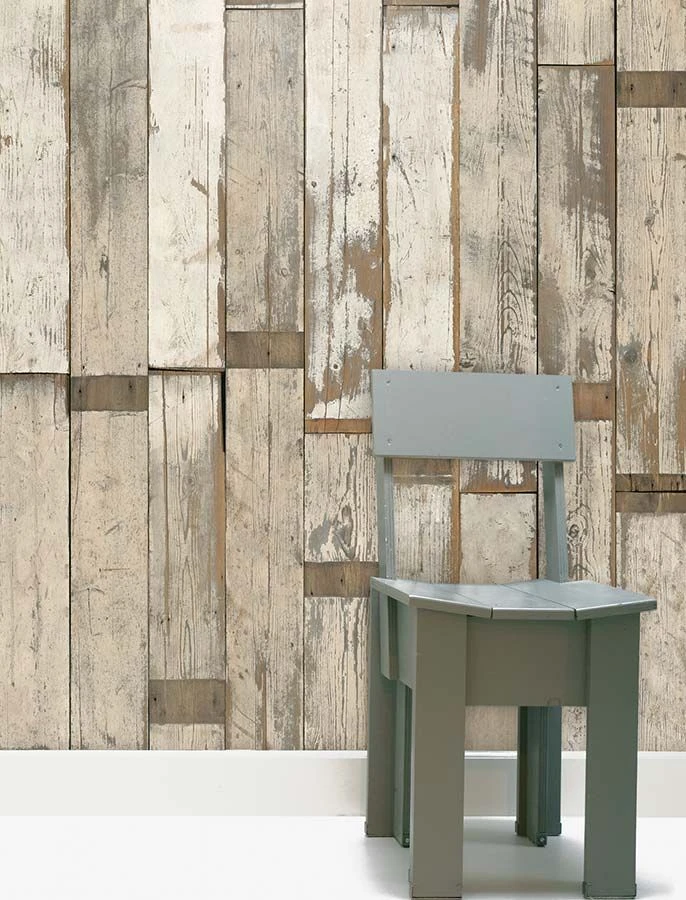 Kein Brett gleicht dem anderen, und das macht diese Holzoptik-Tapete so einzigartig. Wie zusammengezimmert aus verschiedenen gebrauchten Holzbrettern, mit rustikalem Charme und gemütlicher Bodenständigkeit, wirkt Ihre Wand mit der im Digitaldruck täuschend echt produzierten Holz-Imitation. „Scrapwood“ kombiniert hellgraue und cremeweiße Reste von Anstrichen mit den Brauntönen der Bretter zu einer kreativen Bereicherung des Shabby Chic.