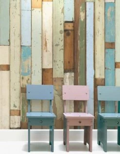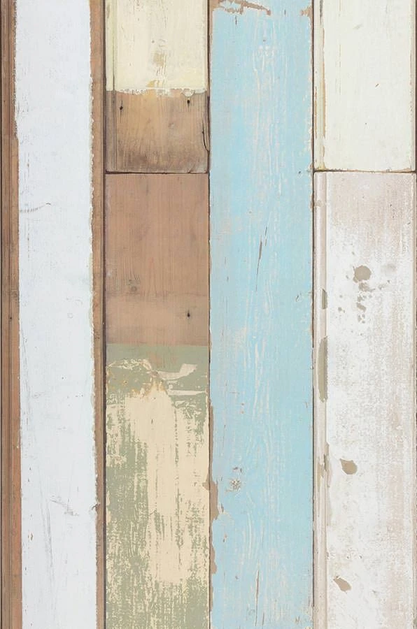 Die Holz-Imitation dieser Digitaldruck-Tapete lebt von den verschiedenen hellen Farben der Holzbretter, die wirken, als hätte man sie kreativ recycelt und daraus eine neue Wand gezimmert. Bretter in Grauweiß, Hellblau, Grauoliv und Blauweiß, dazwischen Bereiche, in denen der natürliche Farbton des Holzes dominiert, ergeben ein charmantes, unbeschwertes Gesamtbild, in dem sich kein Bereich des Musters wiederholt. Mit hellen Farbtönen ergänzen Sie die Tapete zu einem gut gelaunten Shabby Chic.