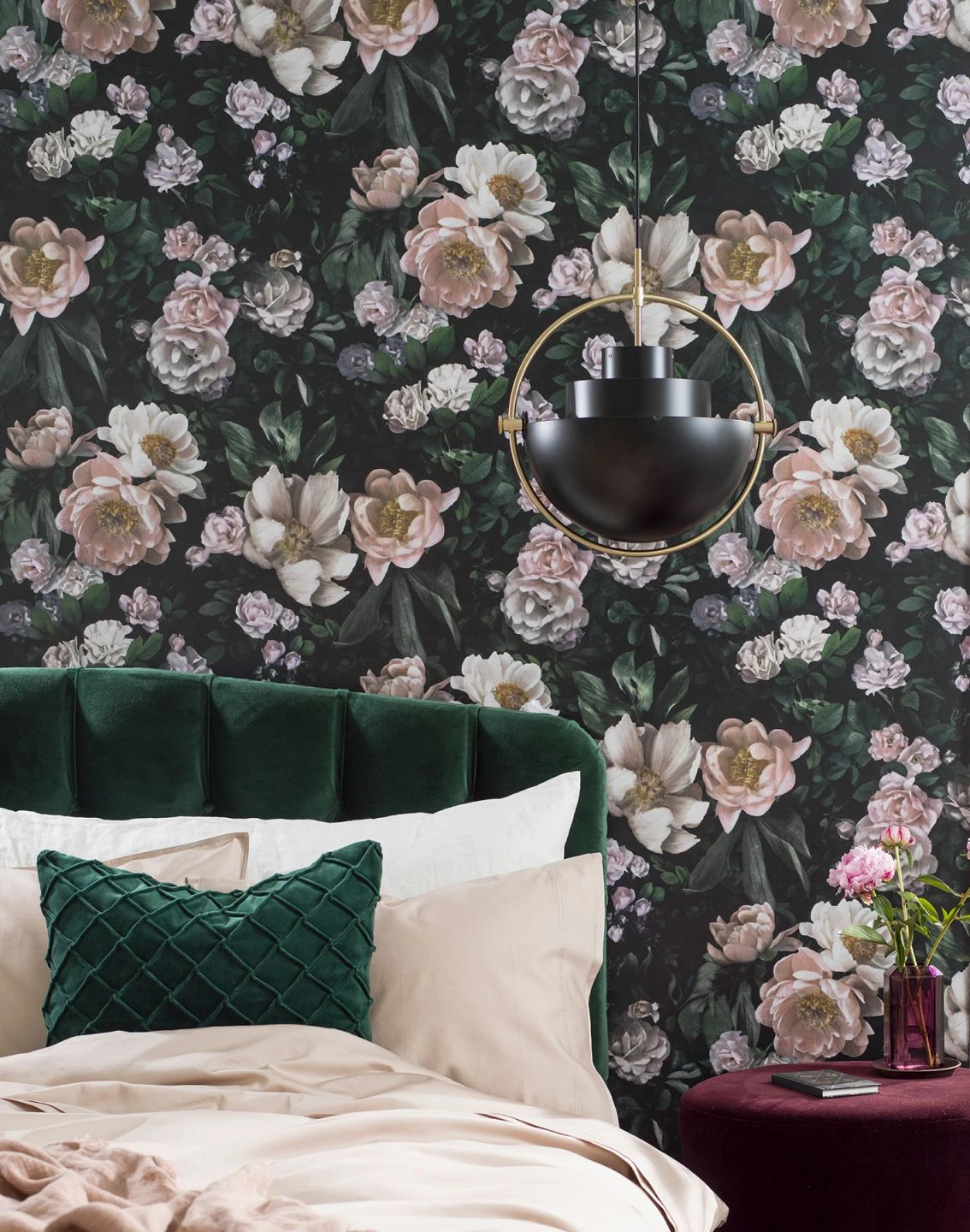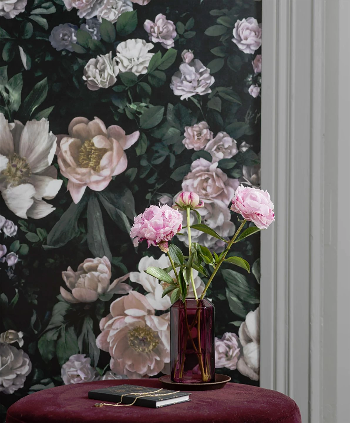 Täuschend echt wirken die plastischen Blüten und Blätter, um den Blick wahrhaftig auf Rosen zu betten. Die Kombination der sanften Musterfarben Cremeweiss, Dunkelgrün, Hellgelb, Zartrosa auf intensivem Schwarzgrün bekräftigt die sinnliche Romantik, die von dieser floralen Vliestapete ausgeht. Samt, Seide oder Leder sind galante Partner für diese Luxustapete.