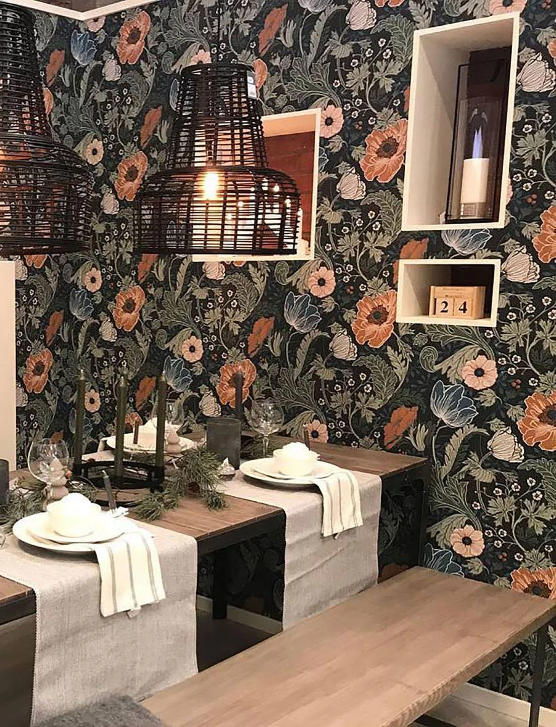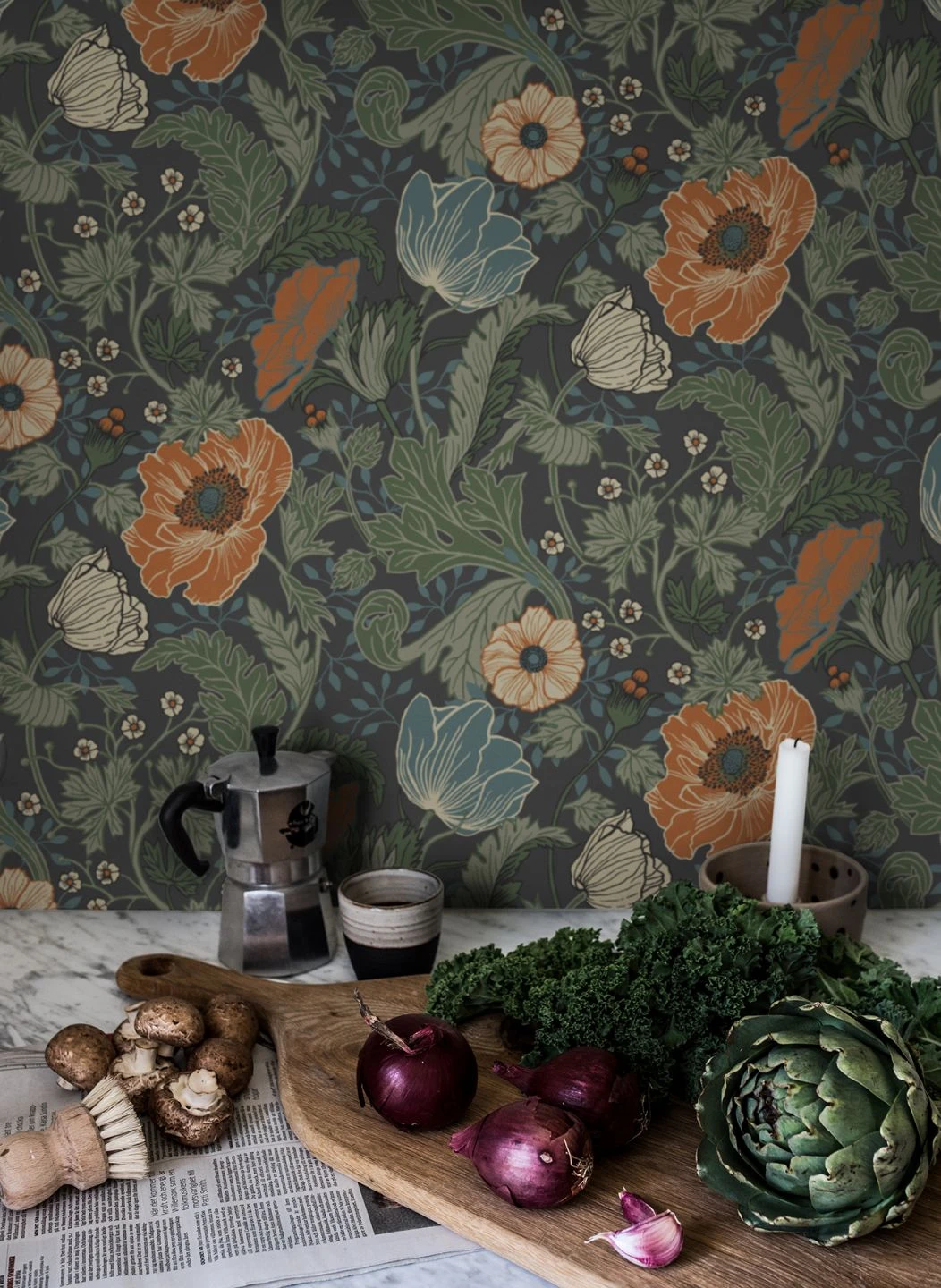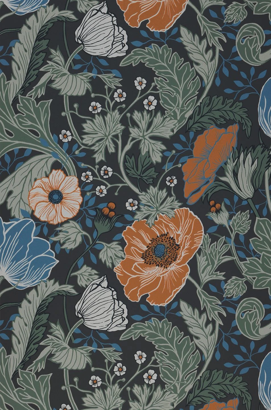 Blumentapete Soria hat Feuer im Blut und jede Menge Dynamik in ihrer Ausstrahlung. Mit Anthrazit als Grundfarbe wird der Raum in eine wohltuend mondäne Atmosphäre getaucht, die pflegeleichte Vliestapete wirkt wie ein hochwertiger Textil-Quillt. In kommunikativen Räumen betont sie den Geselligkeitsfaktor.