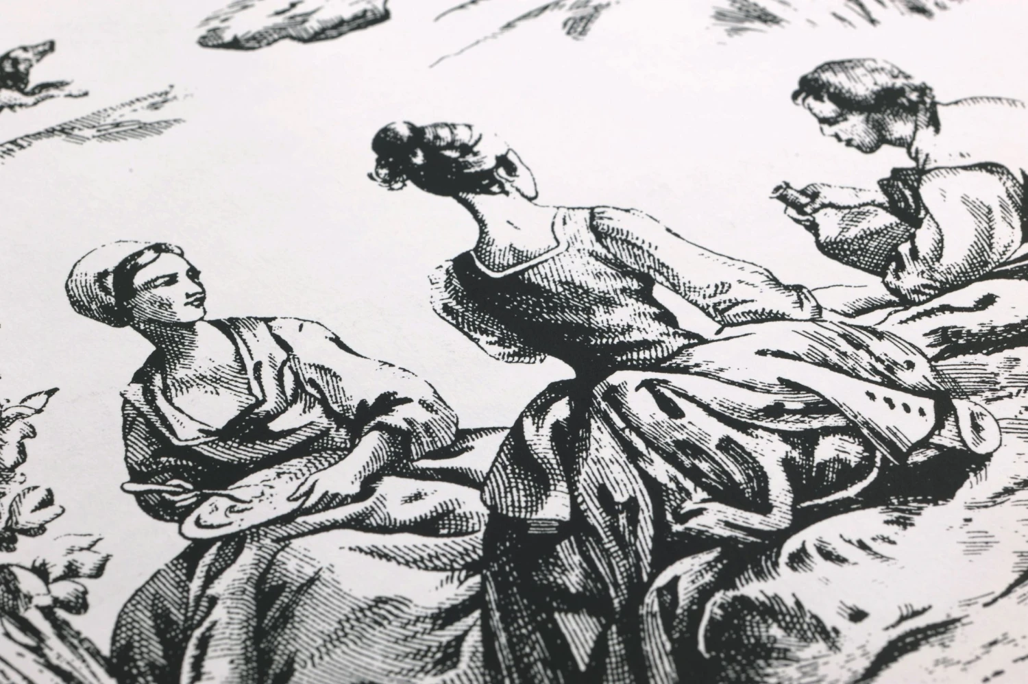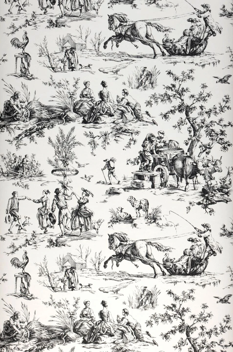 Eine Tapete wie die kostbaren Baumwollstoffe, die im 18. Jahrhundert im französischen Jouy mit filigranen Motiven bedruckt wurden, schmückt Ihren Raum im historischen Stil. Die Motive – Szenen aus dem ländlichen Leben des 18. Jahrhunderts – empfinden die filigrane Drucktechnik nach, die seinerzeit ihresgleichen suchte. Wie bei einem Kupferstich konzentriert sich die Tapete ganz auf schwarze Illustrationen auf dem weißen Grund und lässt sich so bestens kombinieren.