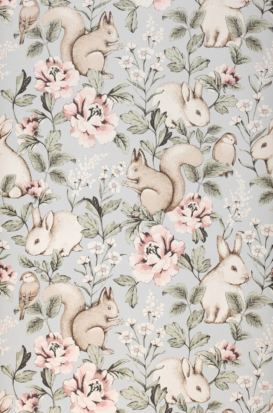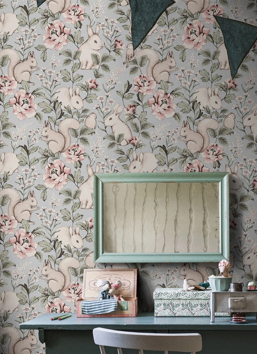 Romantisch und verspielt wirkt die Vliestapete „Twiggy“ mit den niedlichen Kaninchen, Eichhörnchen und Singvögeln inmitten von zarten Blumen. Auf dem hellgrauen Untergrund entfalten die Pastellfarben ihre ganze Wirkung. Cremeweiß und Rosenholz, Blassgrün und Weißbraun sorgen für Helligkeit und Freundlichkeit. So bildet die Tapete eine wunderschöne Kulisse gerade für ein Kinder- oder Jugendzimmer.