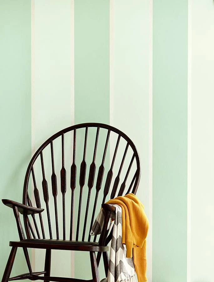 Blockstreifen in fein abgestuften Grüntönen, zwischen die sich ein schmaler glanzvoller Silberstreifen setzt, der durch Lichteinfall stärker oder schwächer hervortritt – Vliestapete Tyra macht sich die raffinierte Wechselwirkung von matten und schimmernden Farben zu Nutze. Sie ist das beste Beispiel für kleine Details mit großem Effekt. Der elegante Look eignet sich sehr gut für repräsentative Räume.