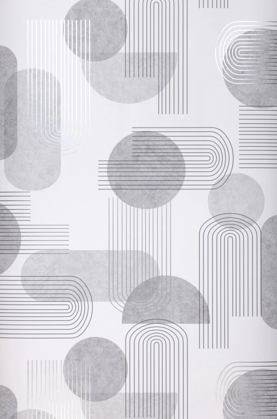 Hier bilden Farbe und Form eine perfekte Einheit: Kühle Grautöne und abstrakte Formen, wie sie aus der Ästhetik des Bauhaus stammen könnten, wirken zusammen und kreieren eine Tapete von zeitloser Eleganz. Silbern schimmernde Highlights sorgen für einen Hauch von Luxus. Die Papiertapete mit dem Retro-Schick ist ein toller Hintergrund für Möbel in den Non-Colors Weiß oder Schwarz. Aber auch mit ausgewählten Farbtupfern erzielen Sie eine beeindruckende Wirkung.