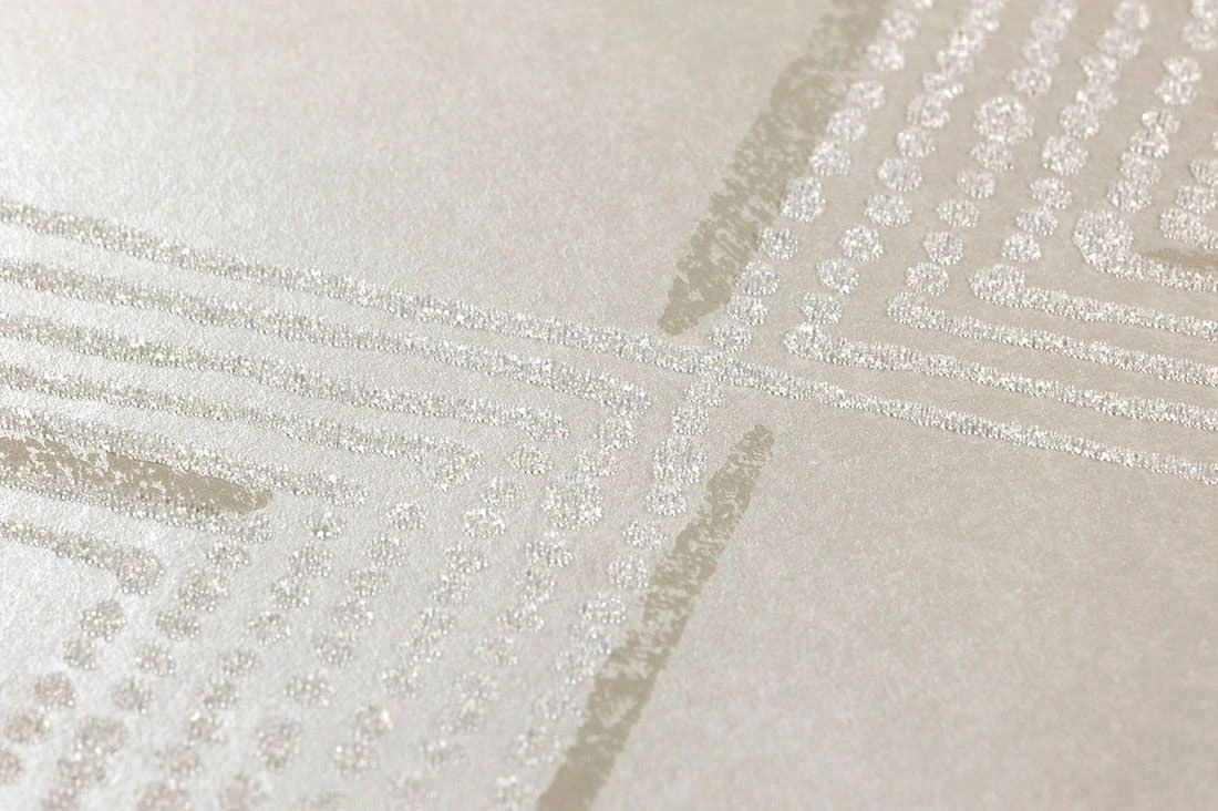 Die erlesene Glasperlen Tapete in Creme, Beige und Cremeweiss Glitzer und mit dynamischem Geometriemuster der kreativen Fantasie lässt Sie gerne zwischen den Zeilen lesen. Funkelnde Augenblicke und Elemente, die mit dem Licht neue Perspektiven bilden, bringen modernes Design glamourös groß raus.